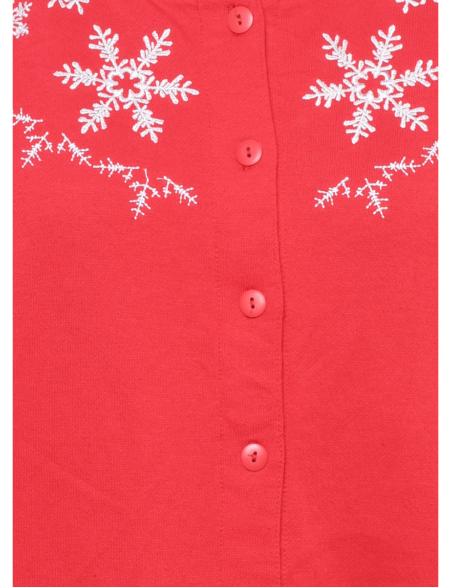 Snowfall design christmas sweatshirt comes in red with a round neck.
