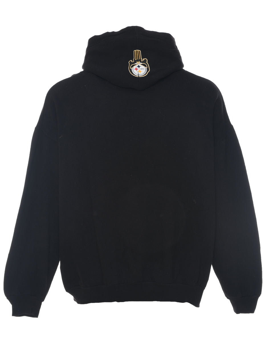Steelers printed hoodie comes in black with a drop shoulder and a pocket.