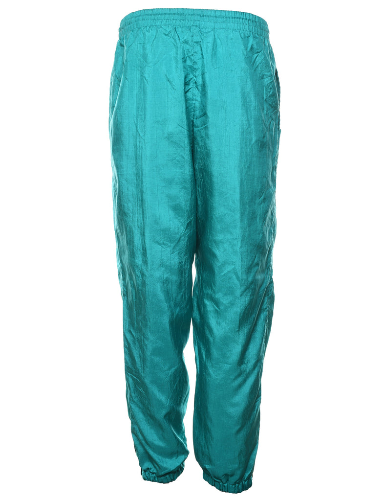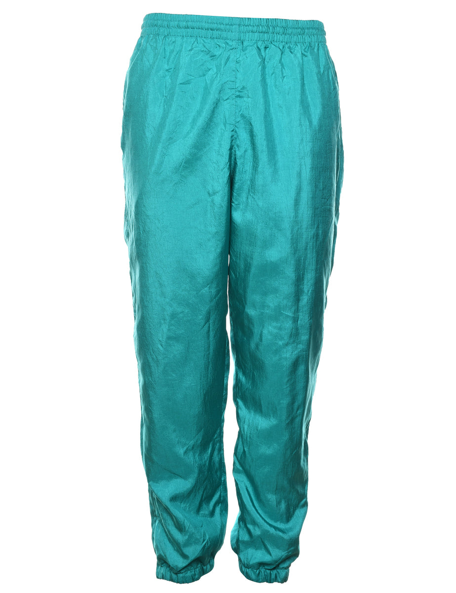 Tapered track pants. Comes in turquoise with full lining and a drawstring waist.