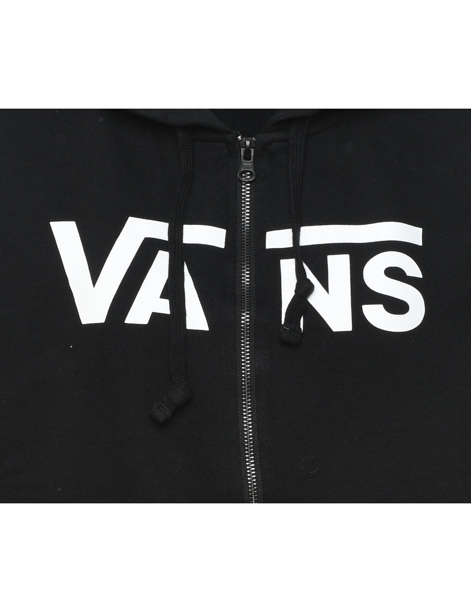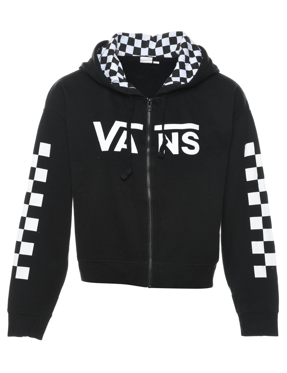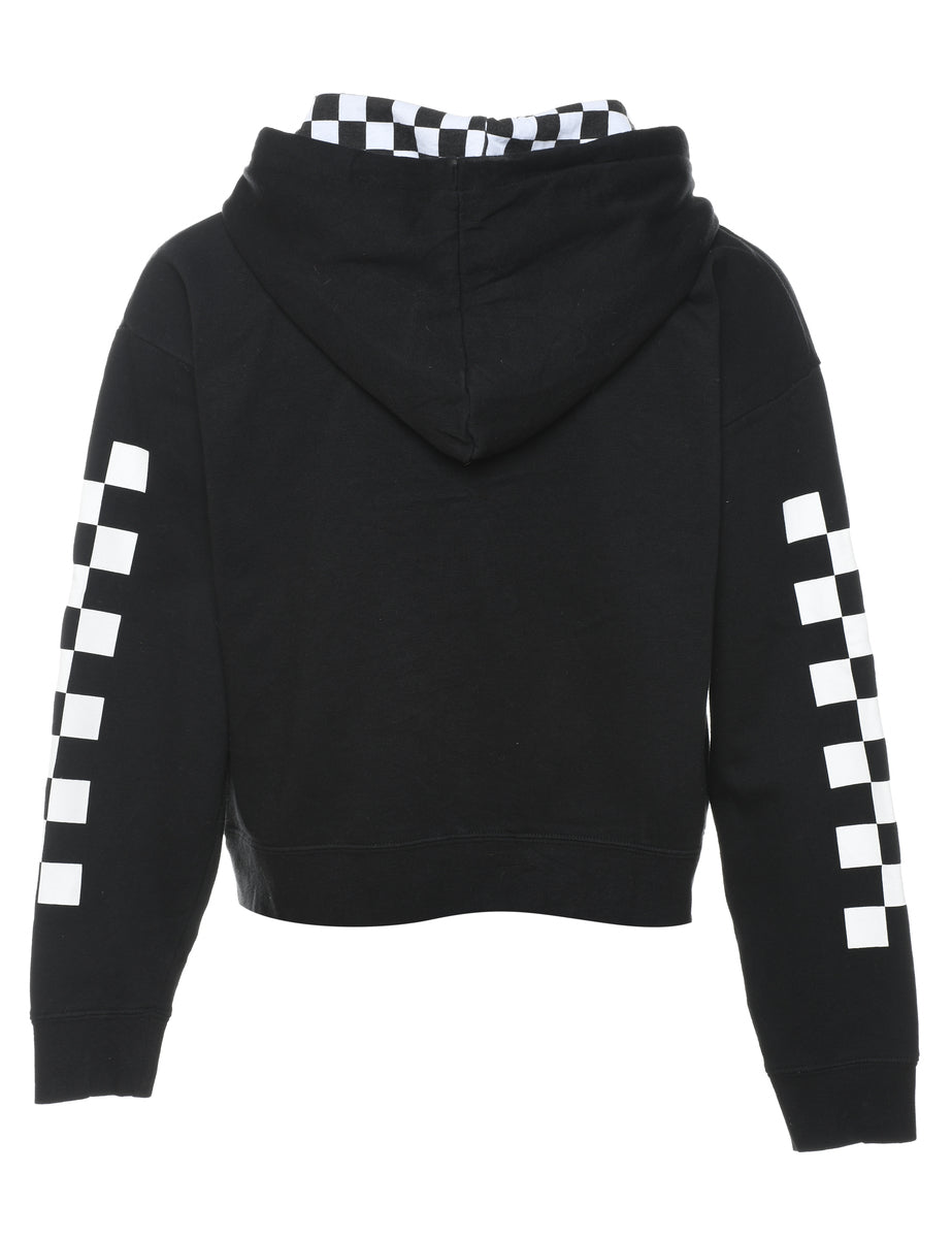 Vintage Vans White & Black Graphic Design Cropped Hoodie - M