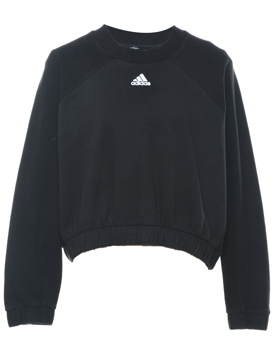 Vintage Adidas Cropped Plain Black Classic Sweatshirt - L