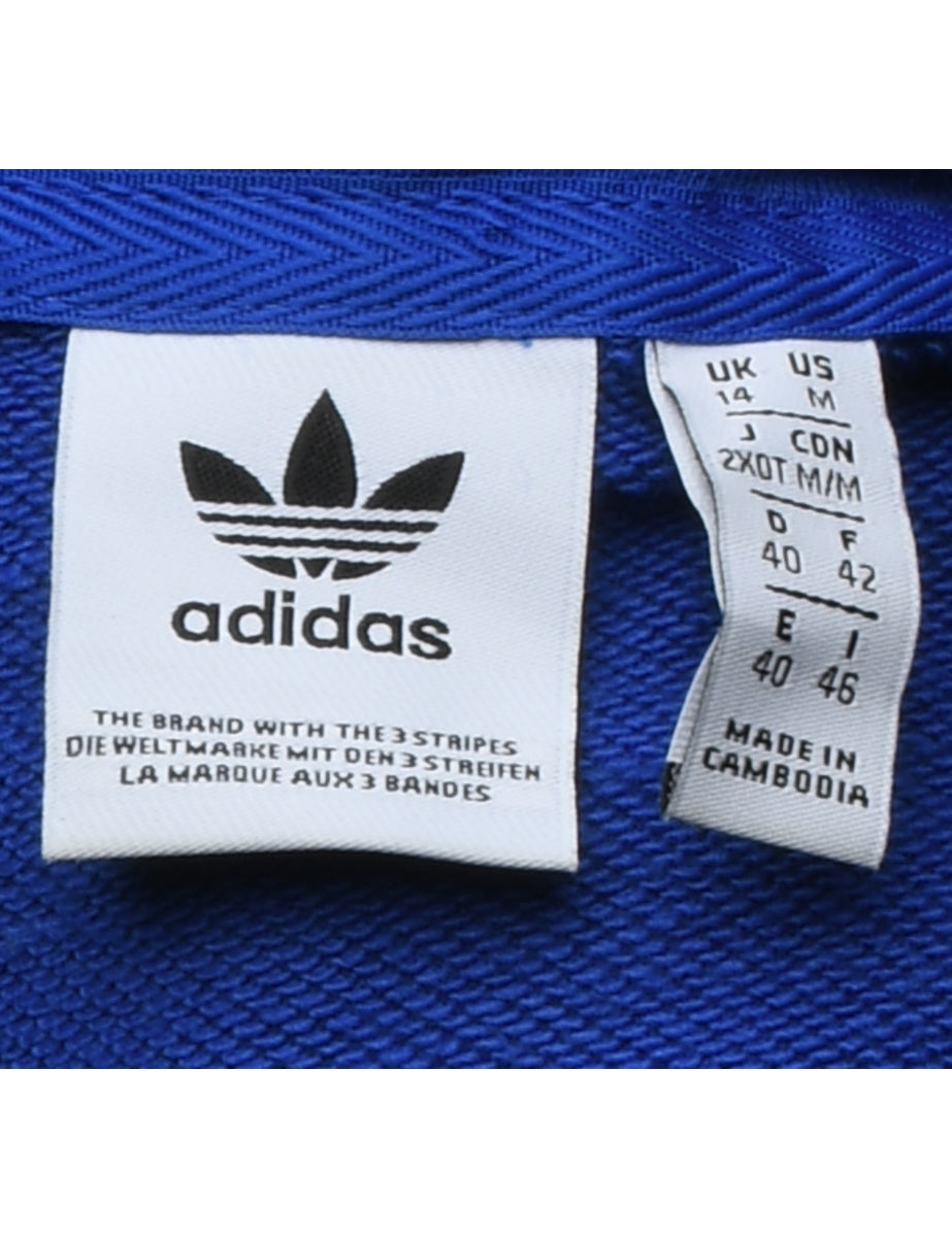 Vintage Adidas Hooded Blue Cropped Sweatshirt - M