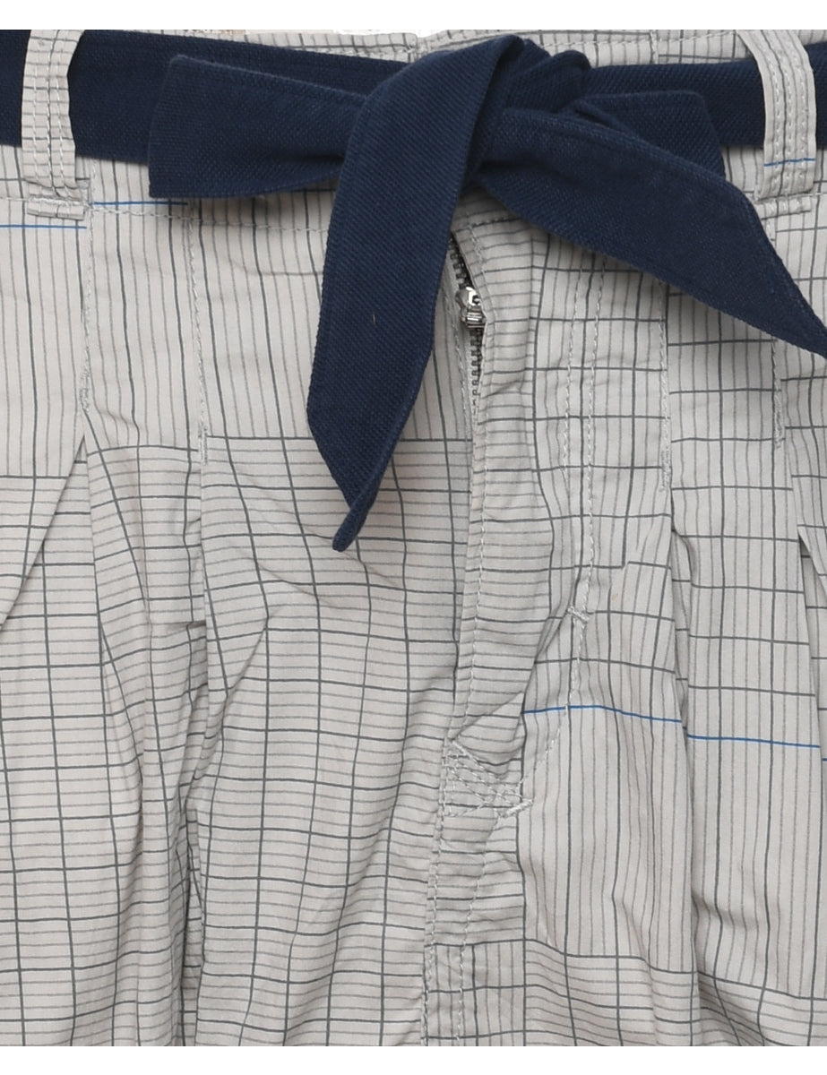 Checked light grey Adidas mini skirt with multiple pockets and a belt.