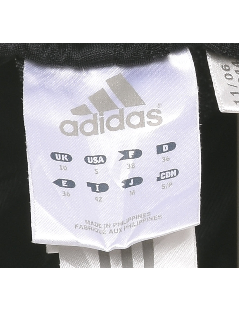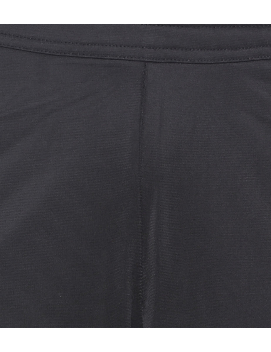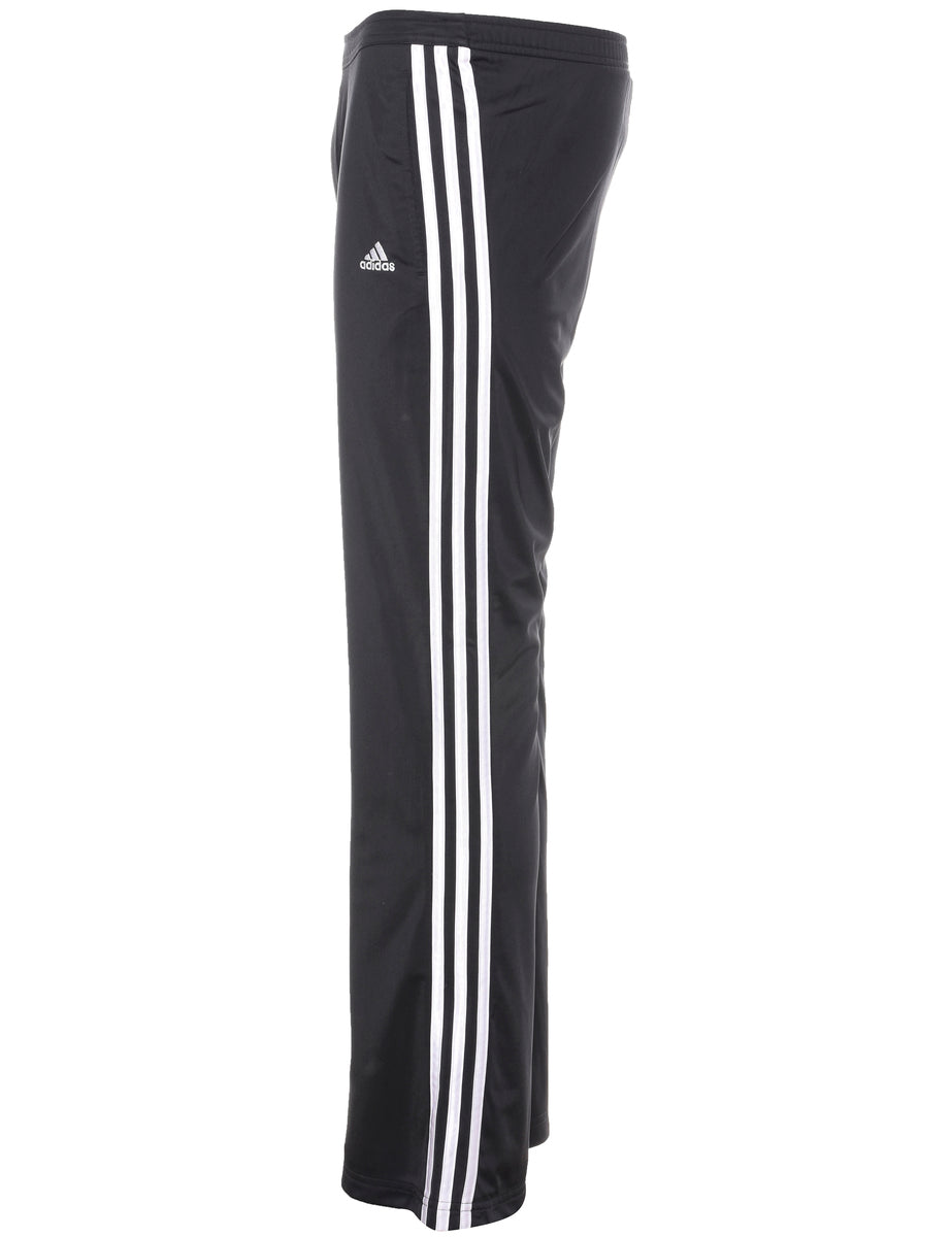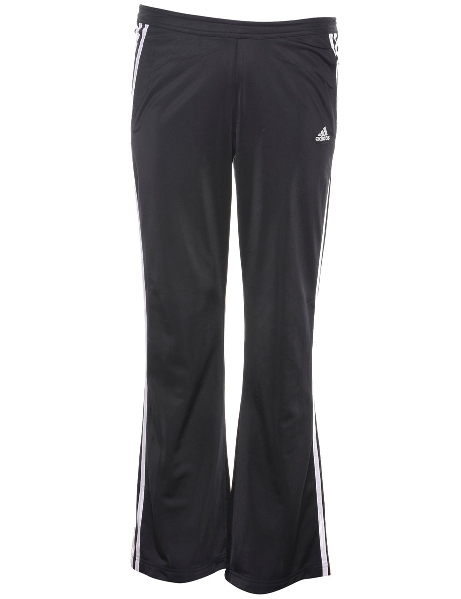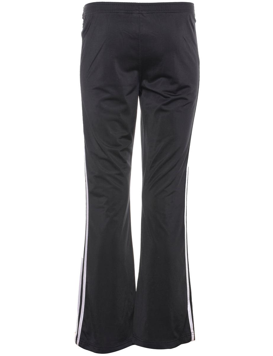 Flared leg track pants in black with multiple pockets and an elasticized waist.