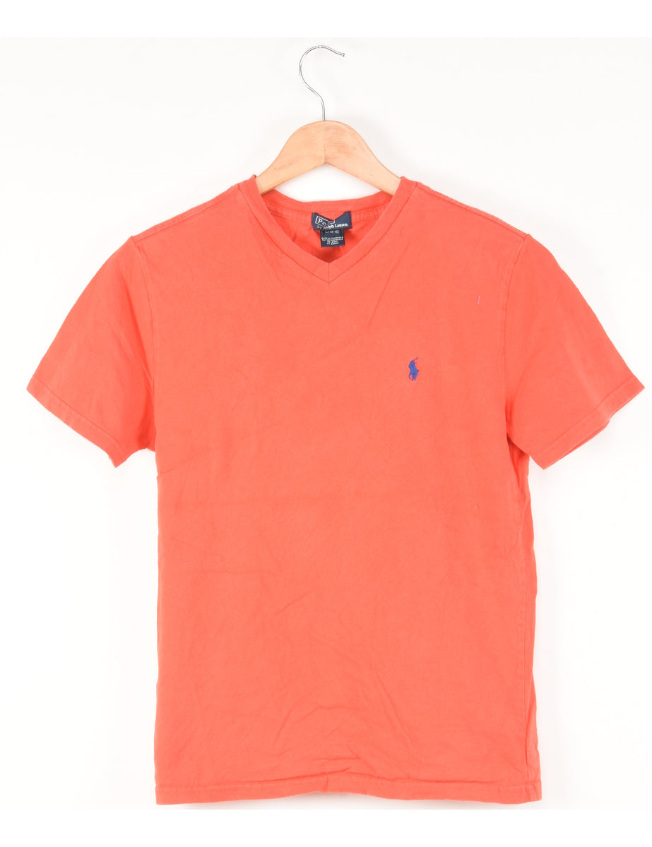 Polo Ralph Lauren plain t-shirt in red with a v-neck.