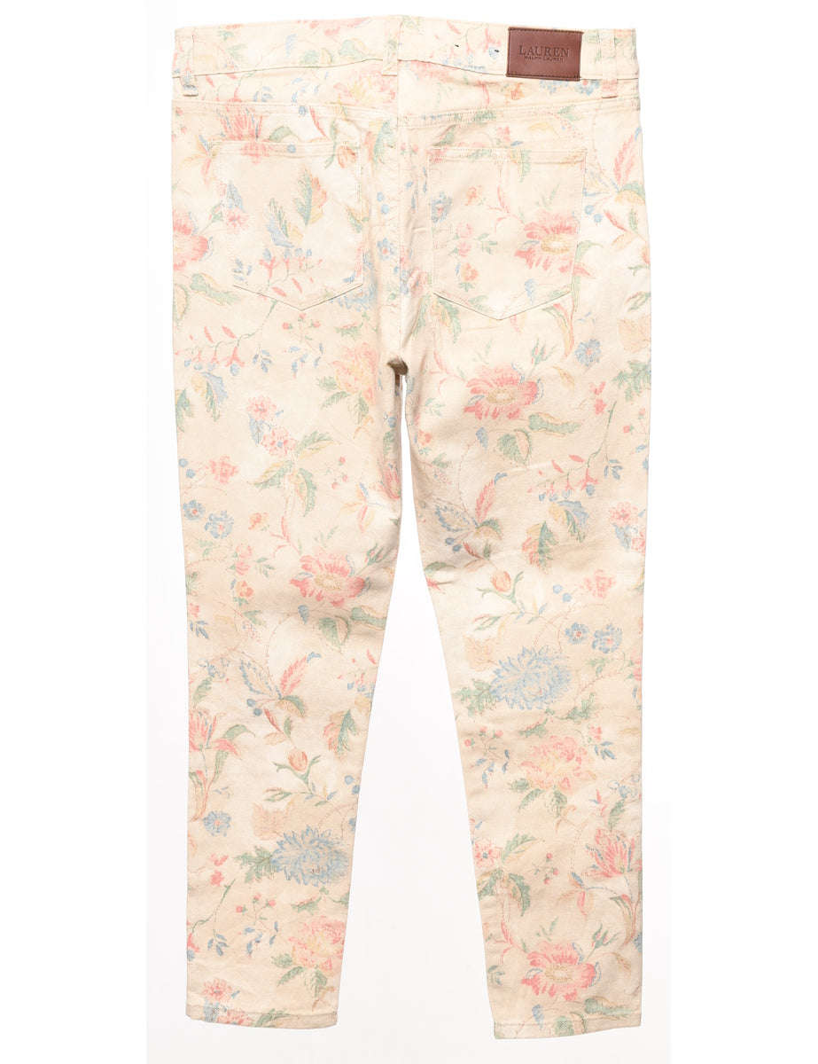 Floral tapered jeans in beige with multiple pockets. From the brand Ralph Lauren.