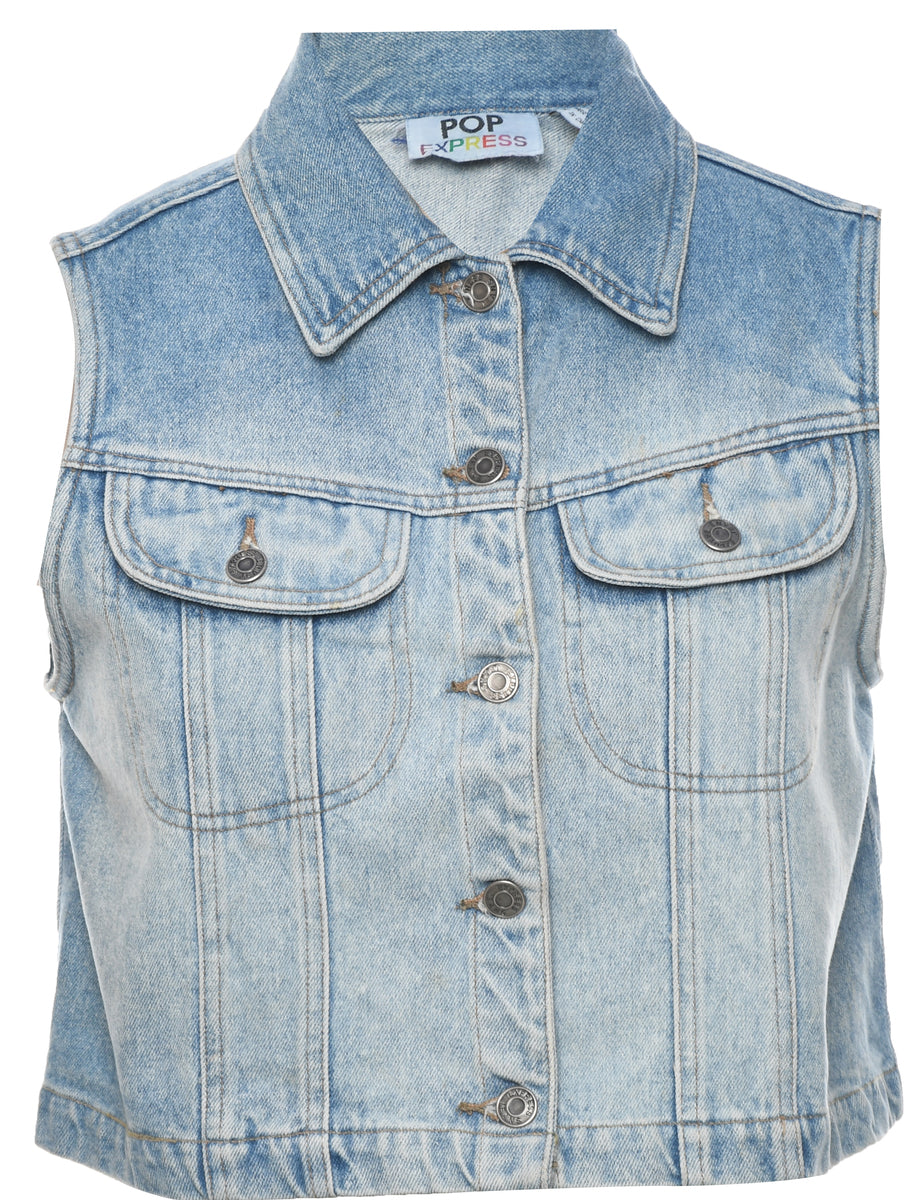 Vintage Button Front Denim Jacket Vest - L