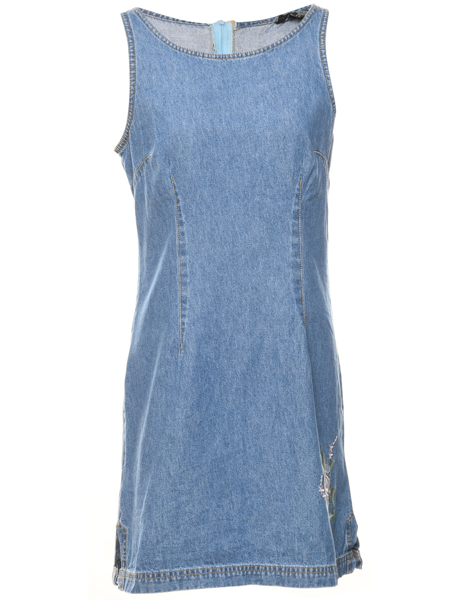 Vintage Fitted Medium Wash Denim Mini Dress - M