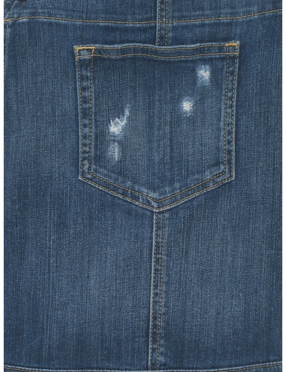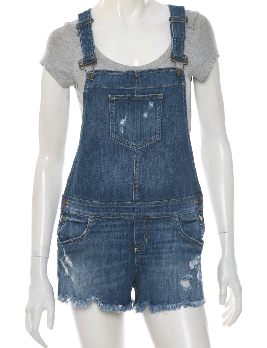 Guess distressed cropped dungarees in stone wash with adjustable strap and multiple pockets.