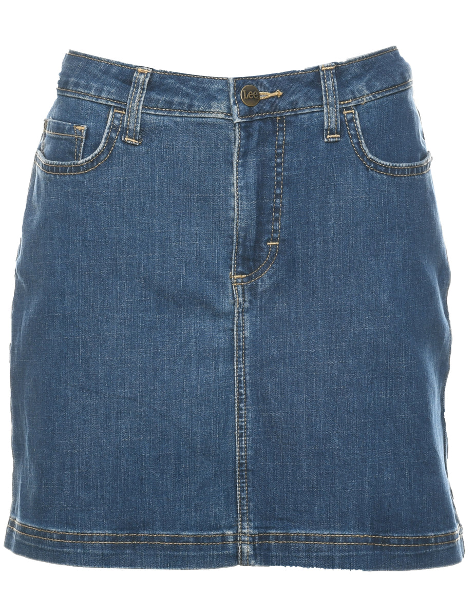 Lee pencil shape denim skirt. Comes in medium wash with multiple pockets.
