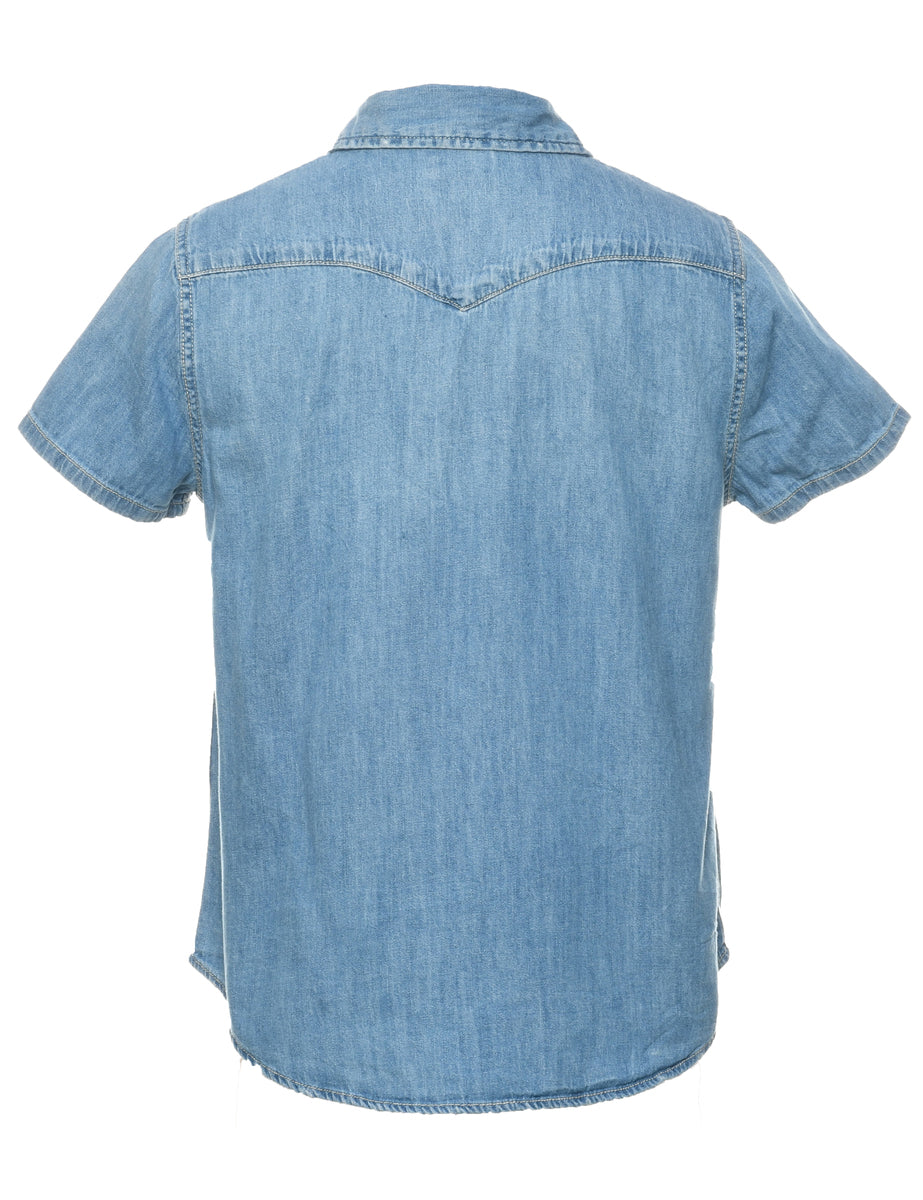 Short sleeve denim shirt. Levi's in medium wash with two pockets and a classic collar.