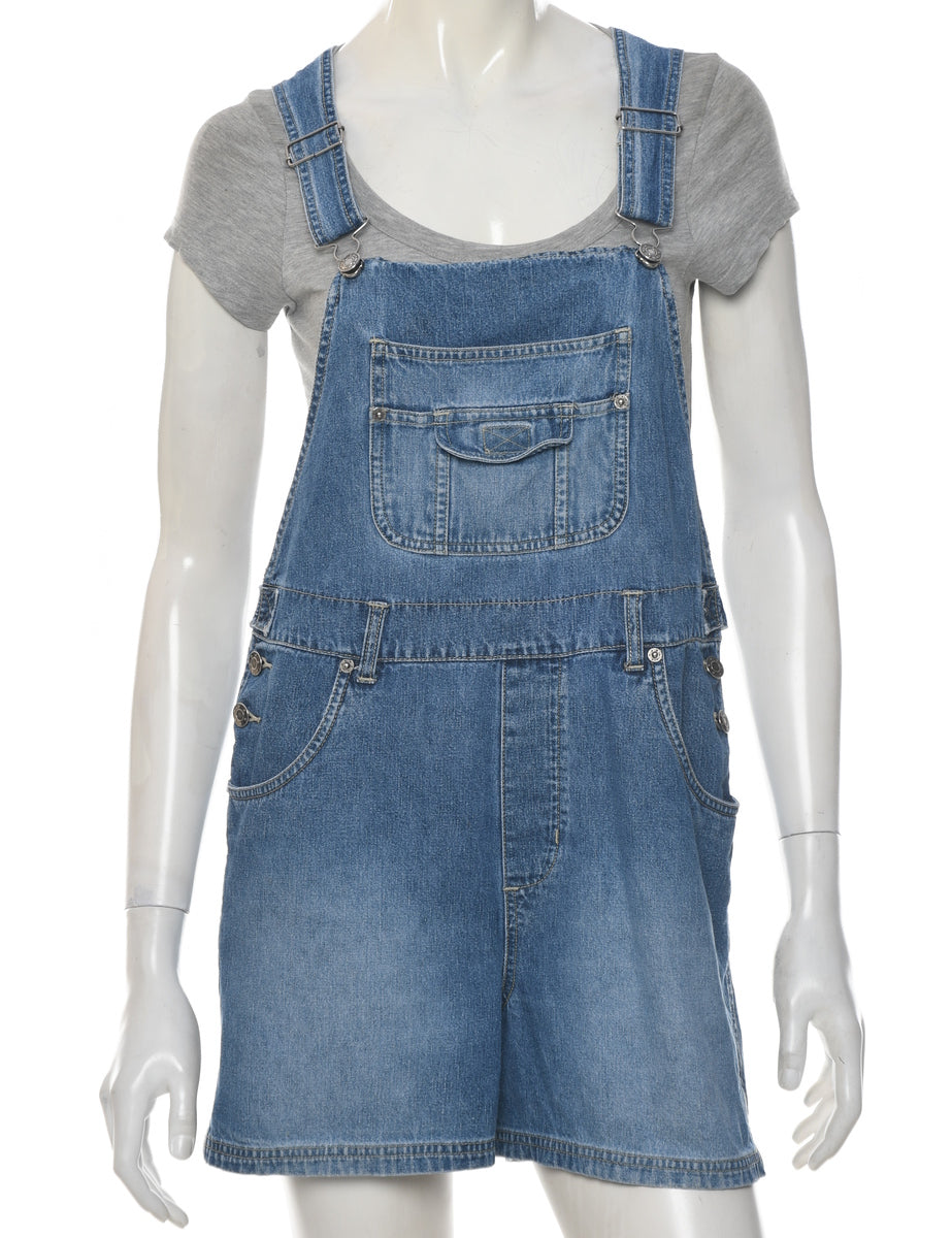 Straight leg cropped dungarees. Comes in stone wash with adjustable strap and pockets.