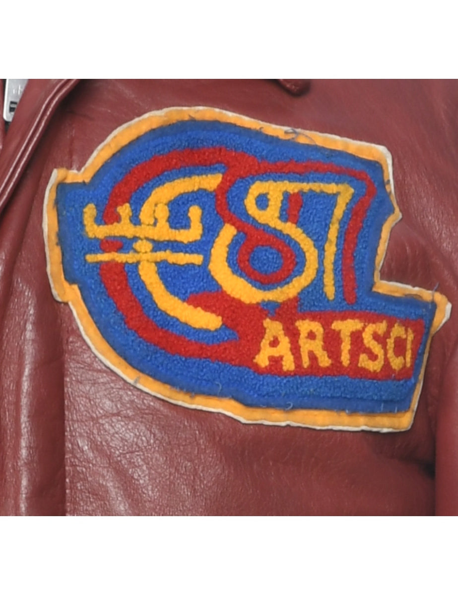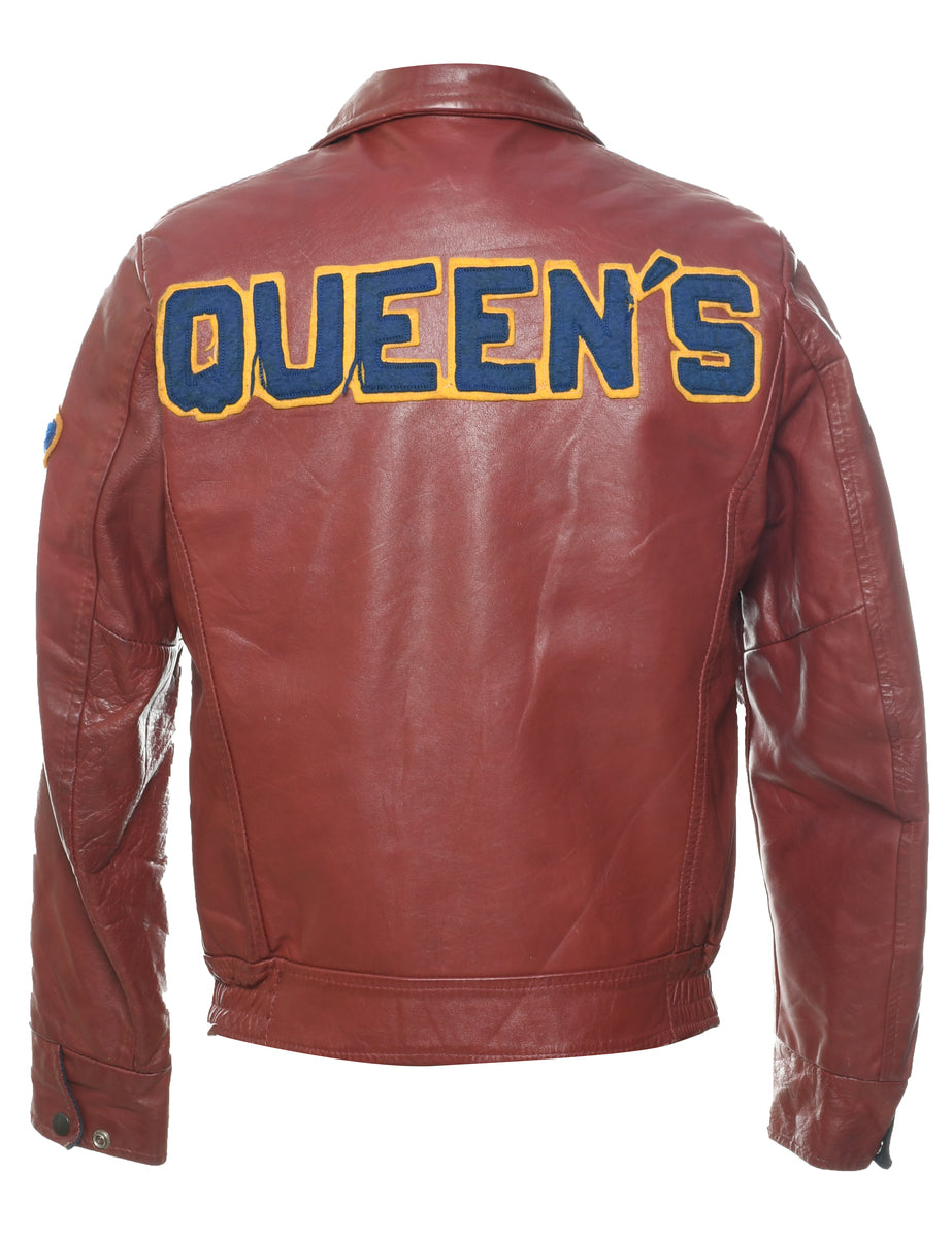 1980s Queens Universiy Leather Varsity Jacket - S