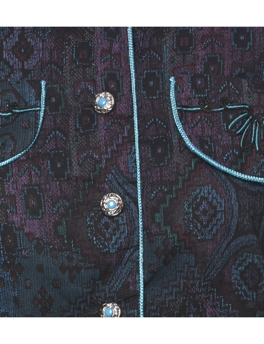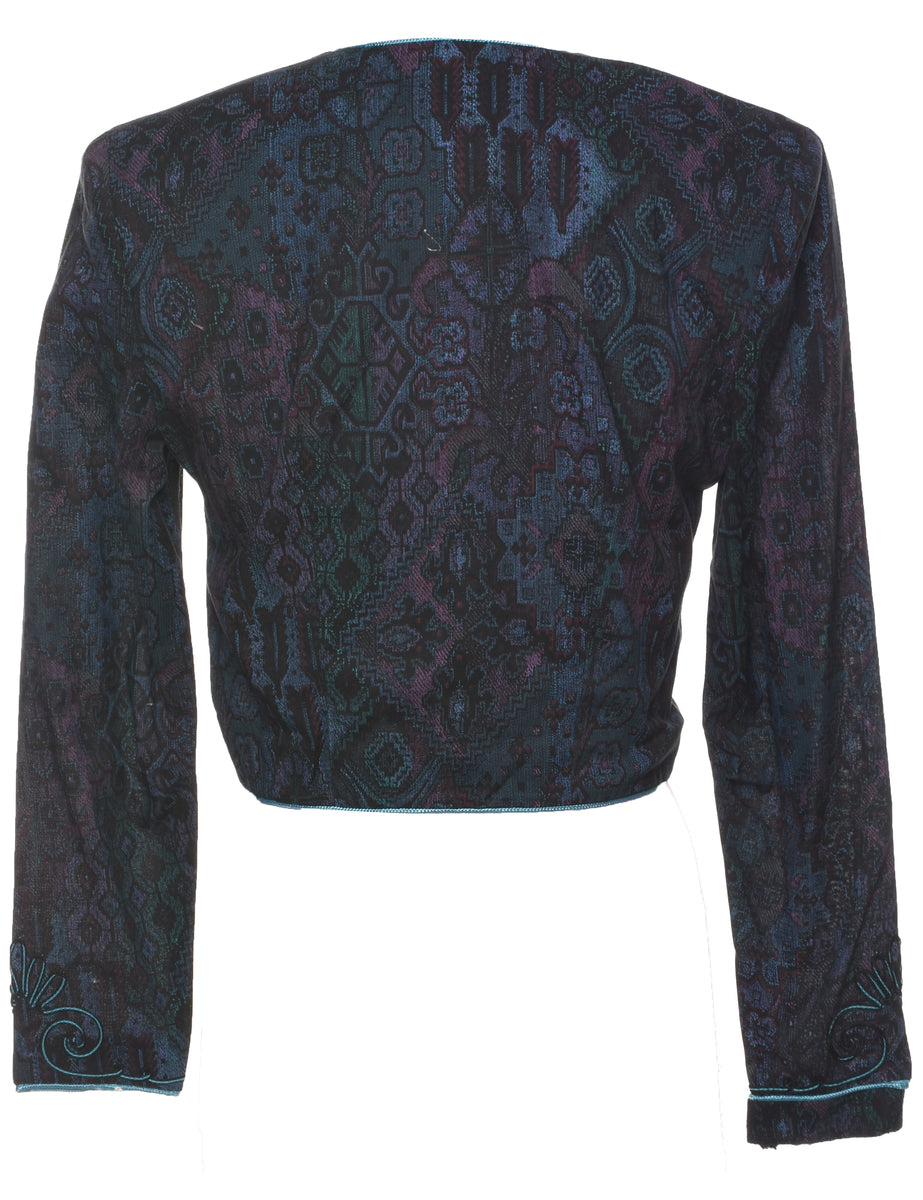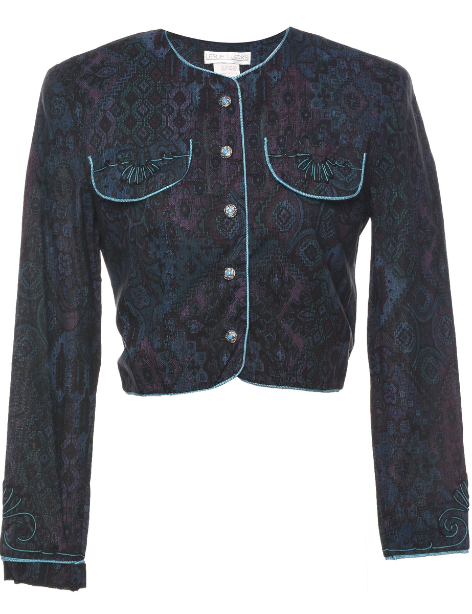 Cropped jacket in multi-colour with decorative pockets and contrasting fabric trim.