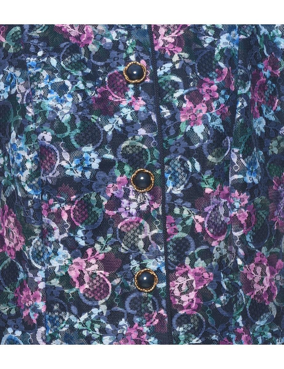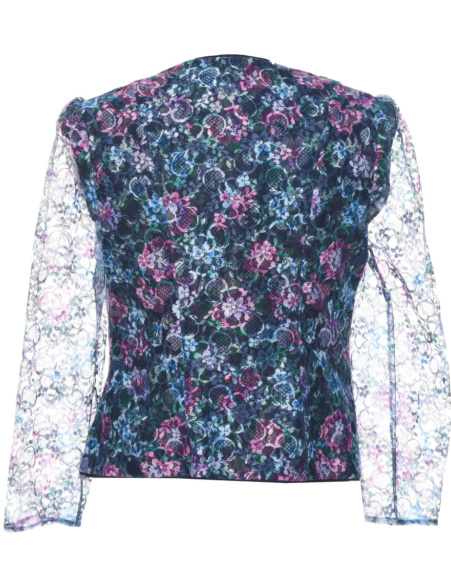 Floral pattern multi-colour jacket with shoulder pads and sheer sleeves.