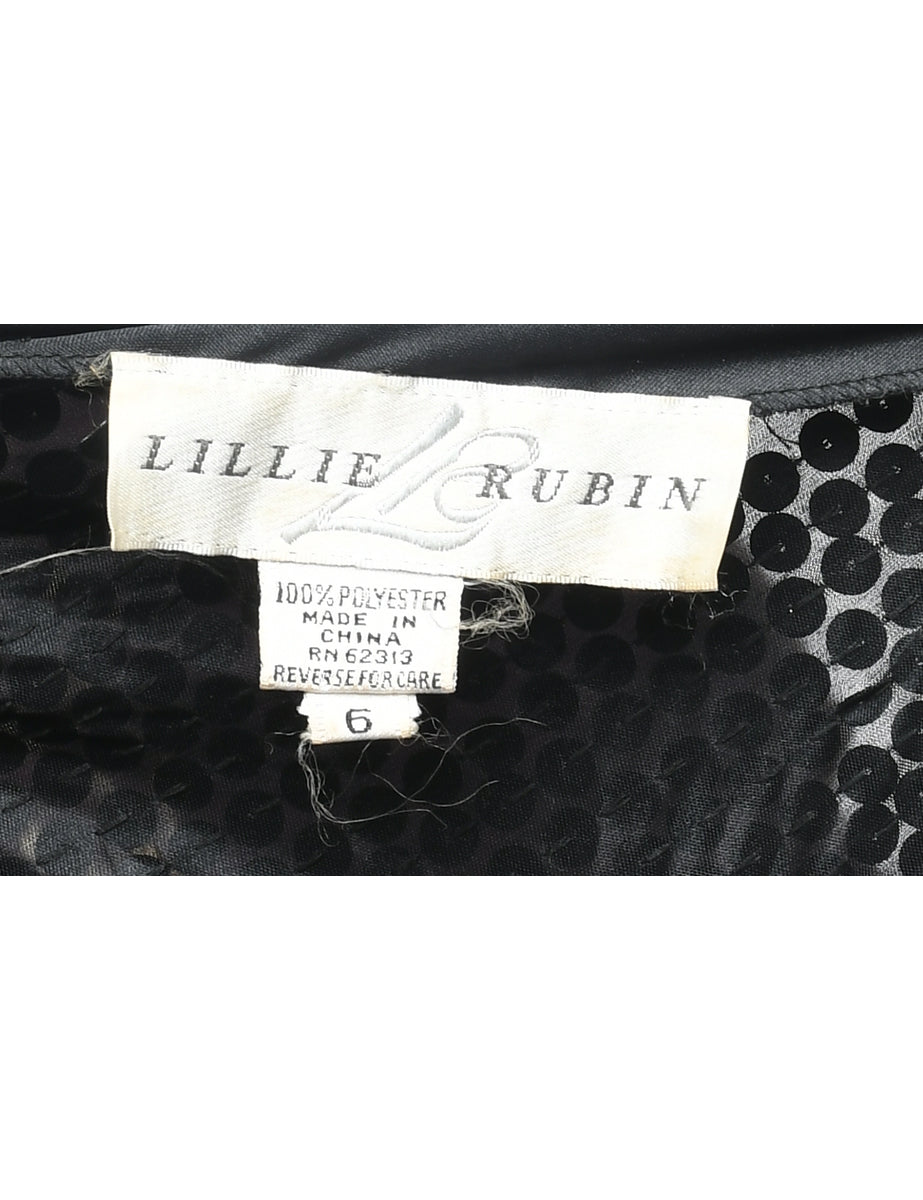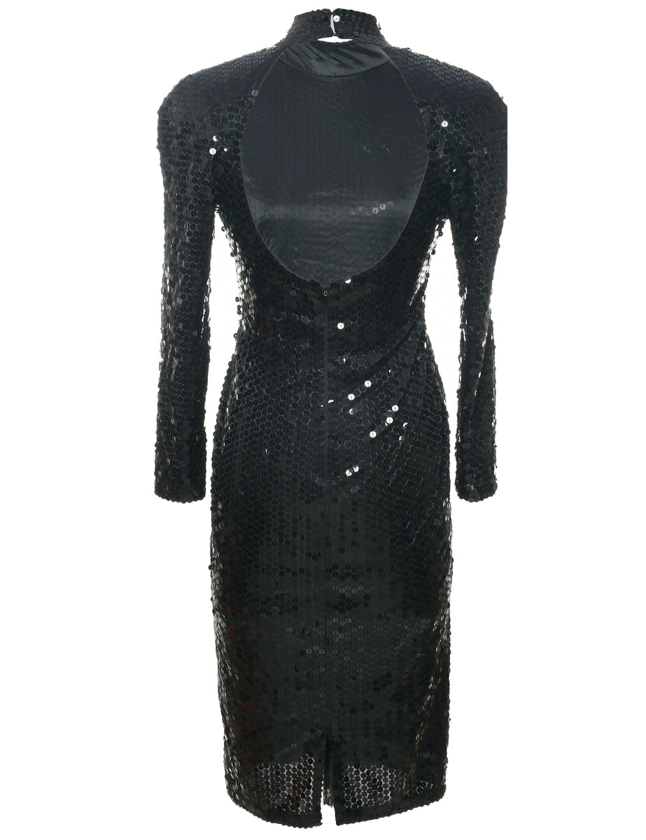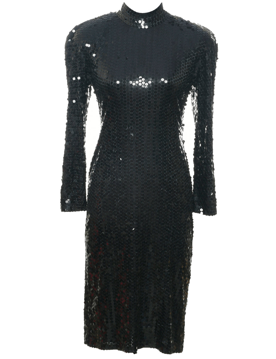 Sequined evening dress. Comes in black with key hole neckline and removable shoulder pads.