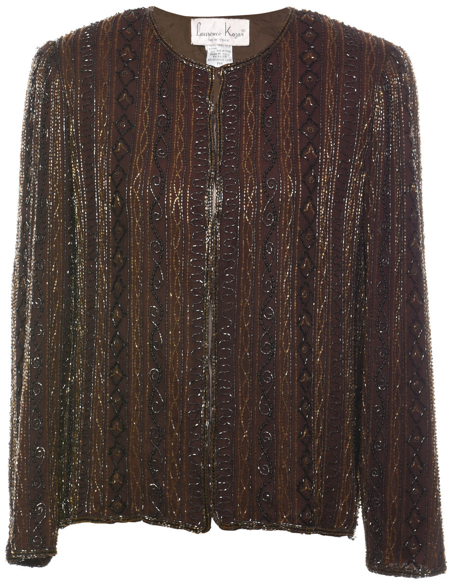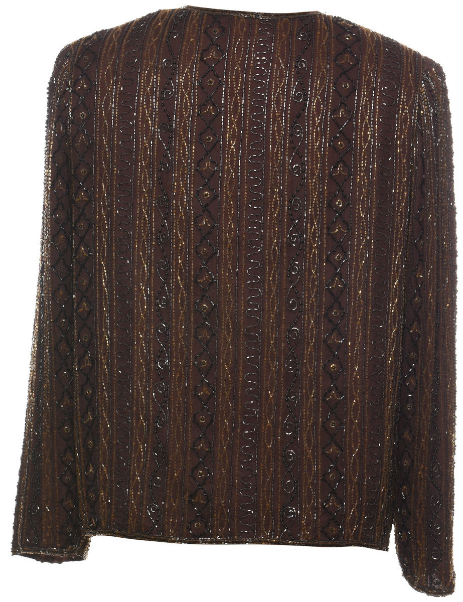 Beaded 1980s dark brown evening jacket complete with full lining and shoulder pads.