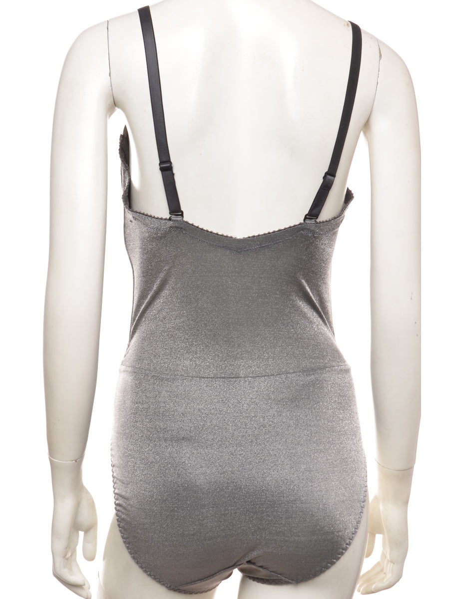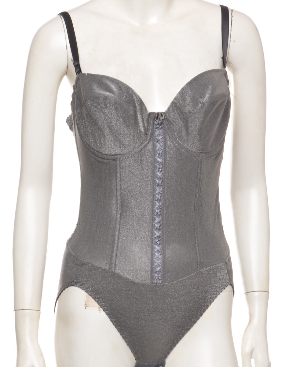 Vintage 1990s Grey One-piece Metallic Lace Up Bodysuit - M