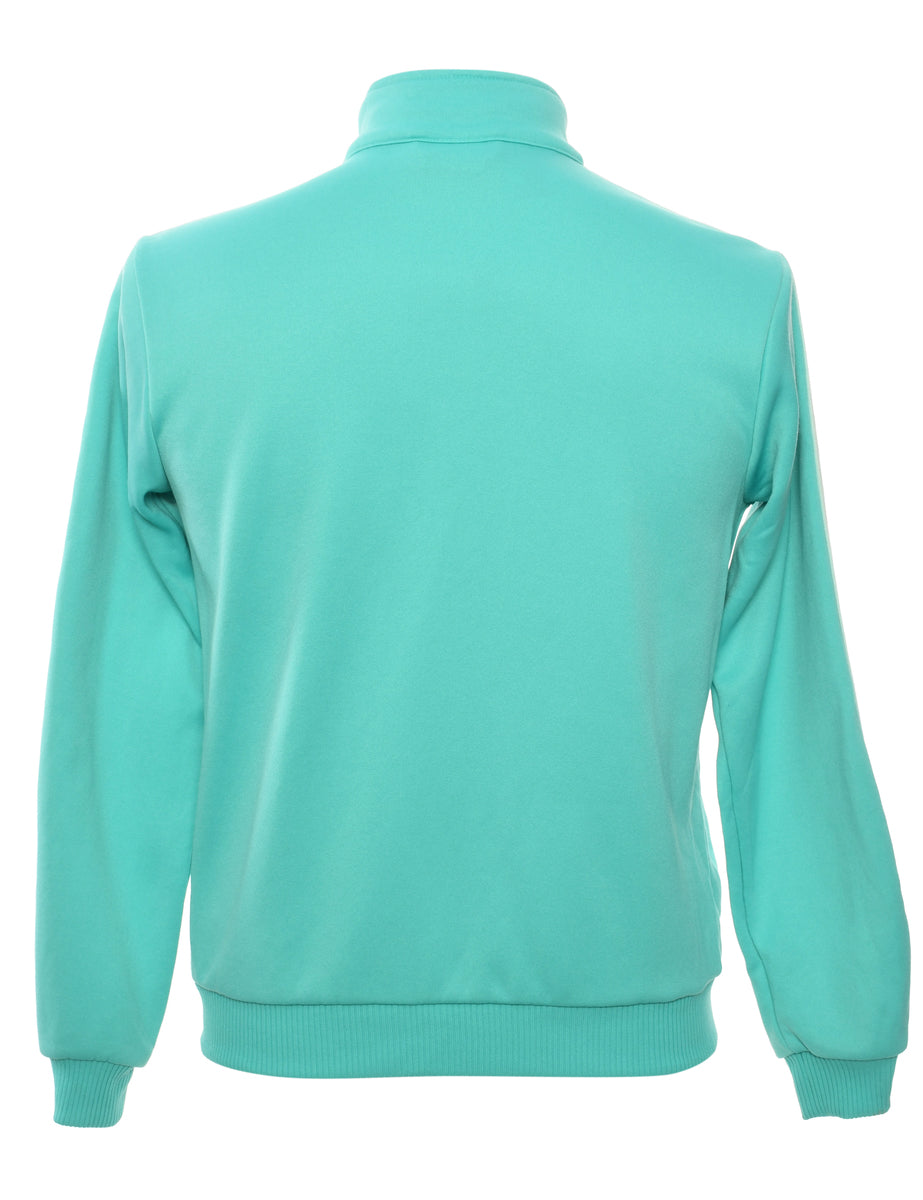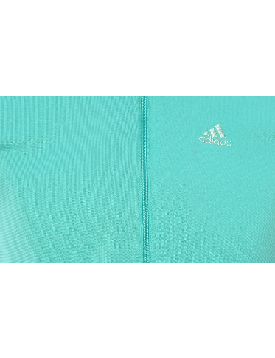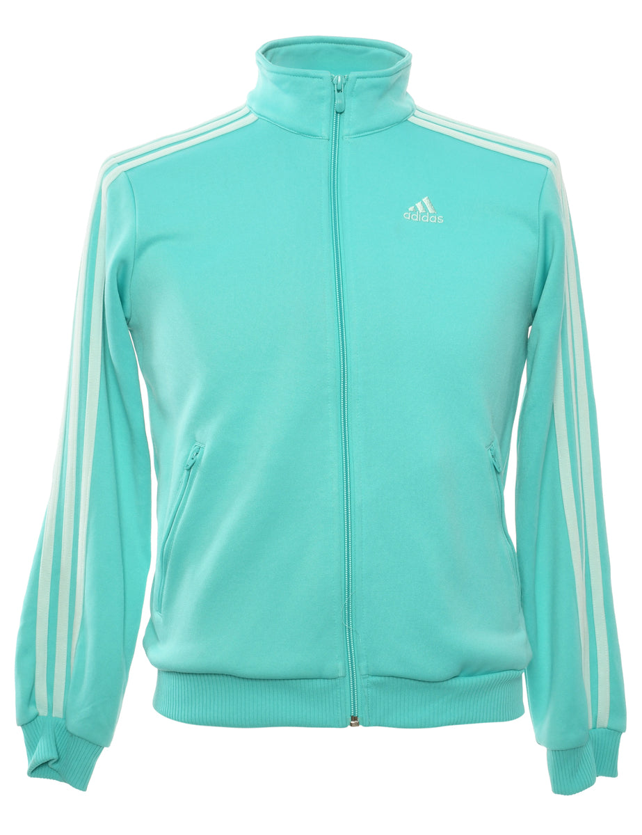 Adidas track top comes in aqua blue with zippered pockets.