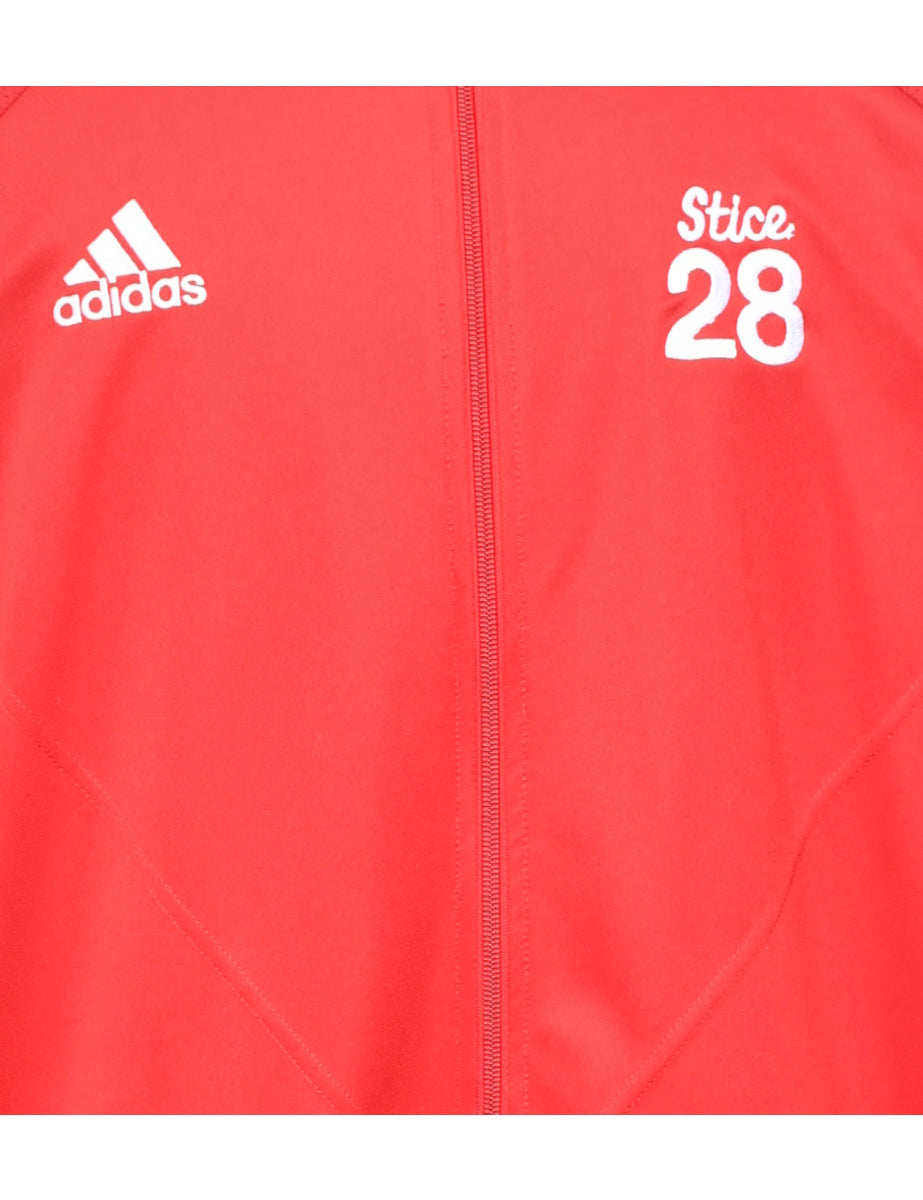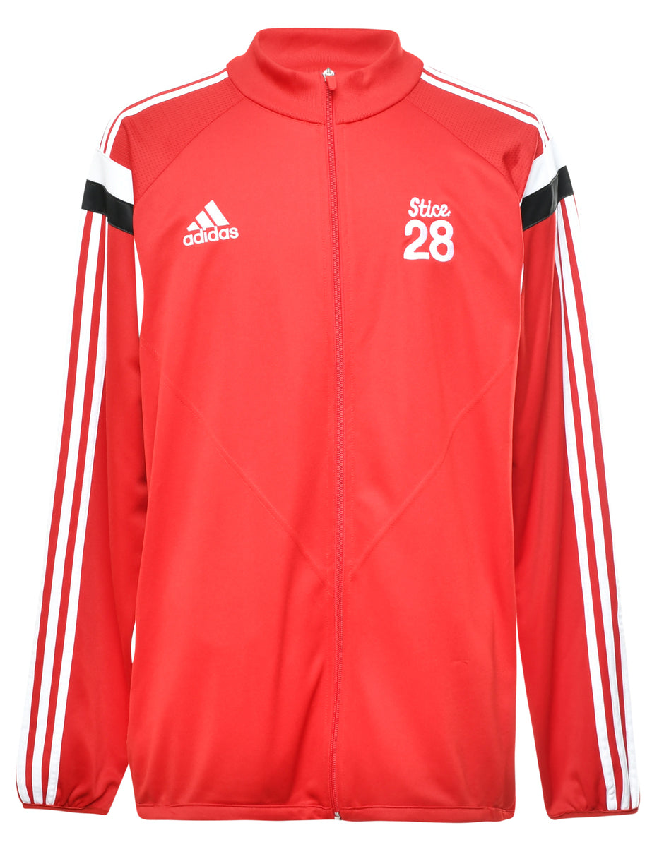 High neck track top. Adidas in red with raglan sleeves.