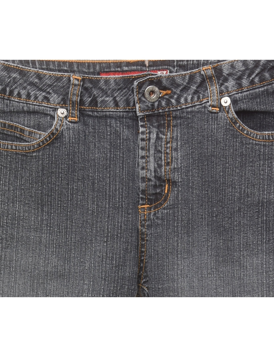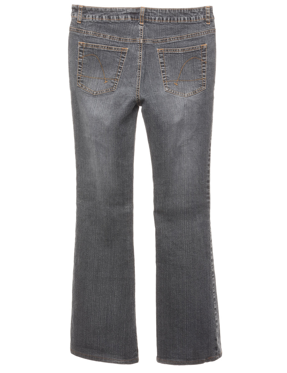 Bootcut jeans comes in black with multiple pockets.