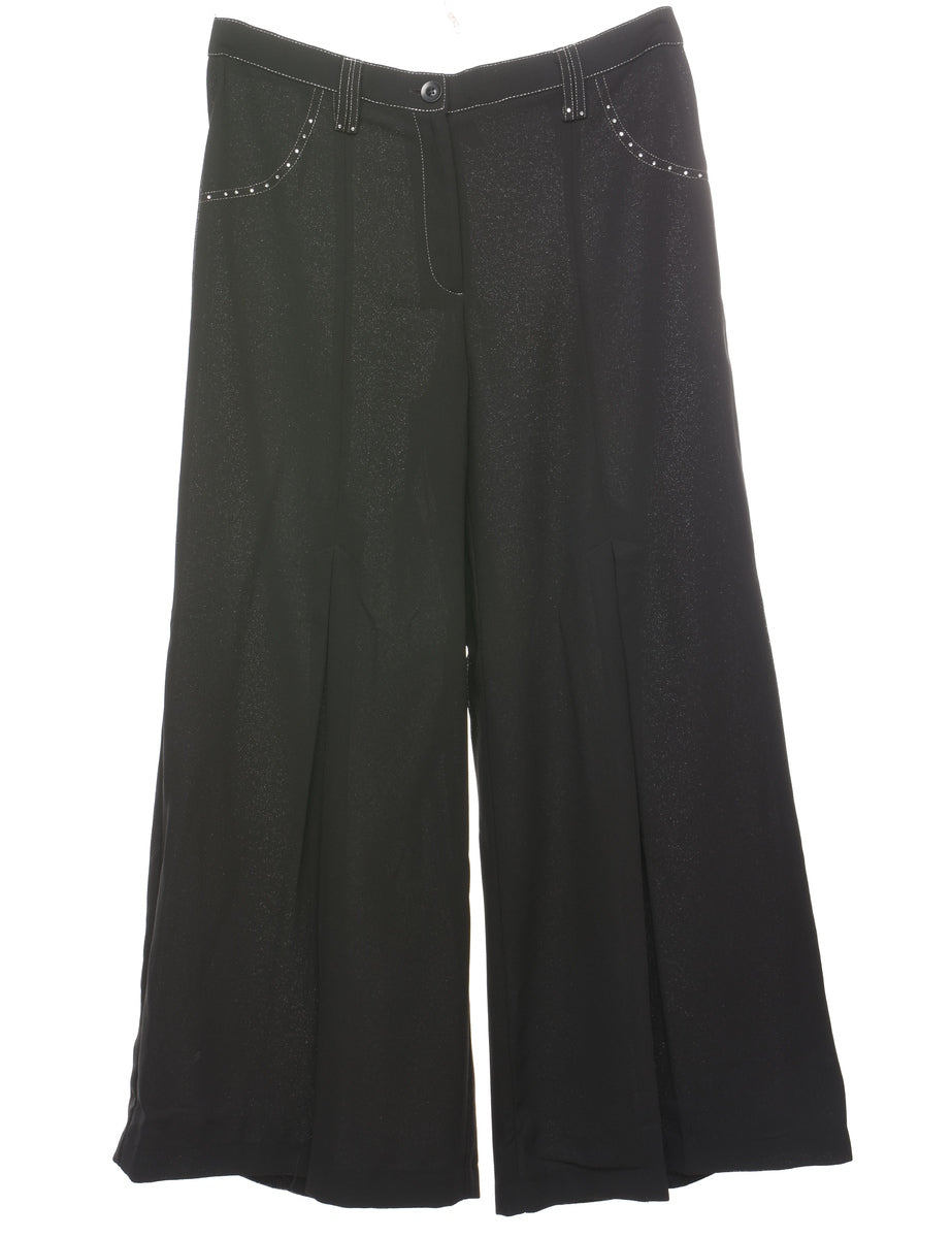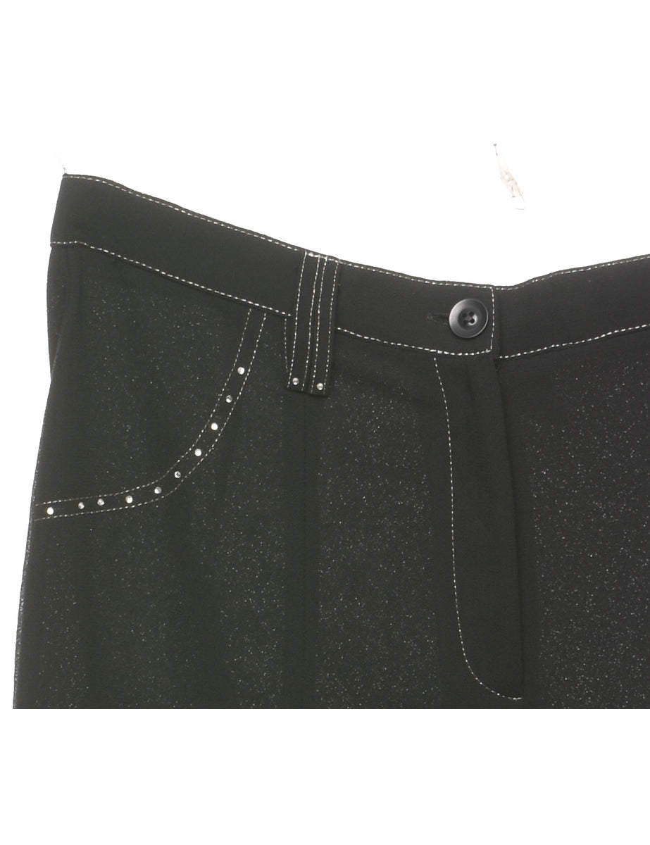 Y2K Vintage Black Wide-Leg Embellished Trousers - W31 L28