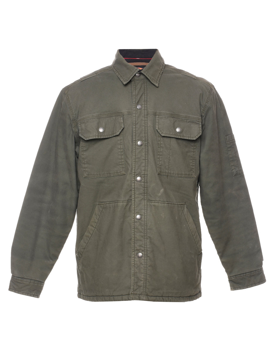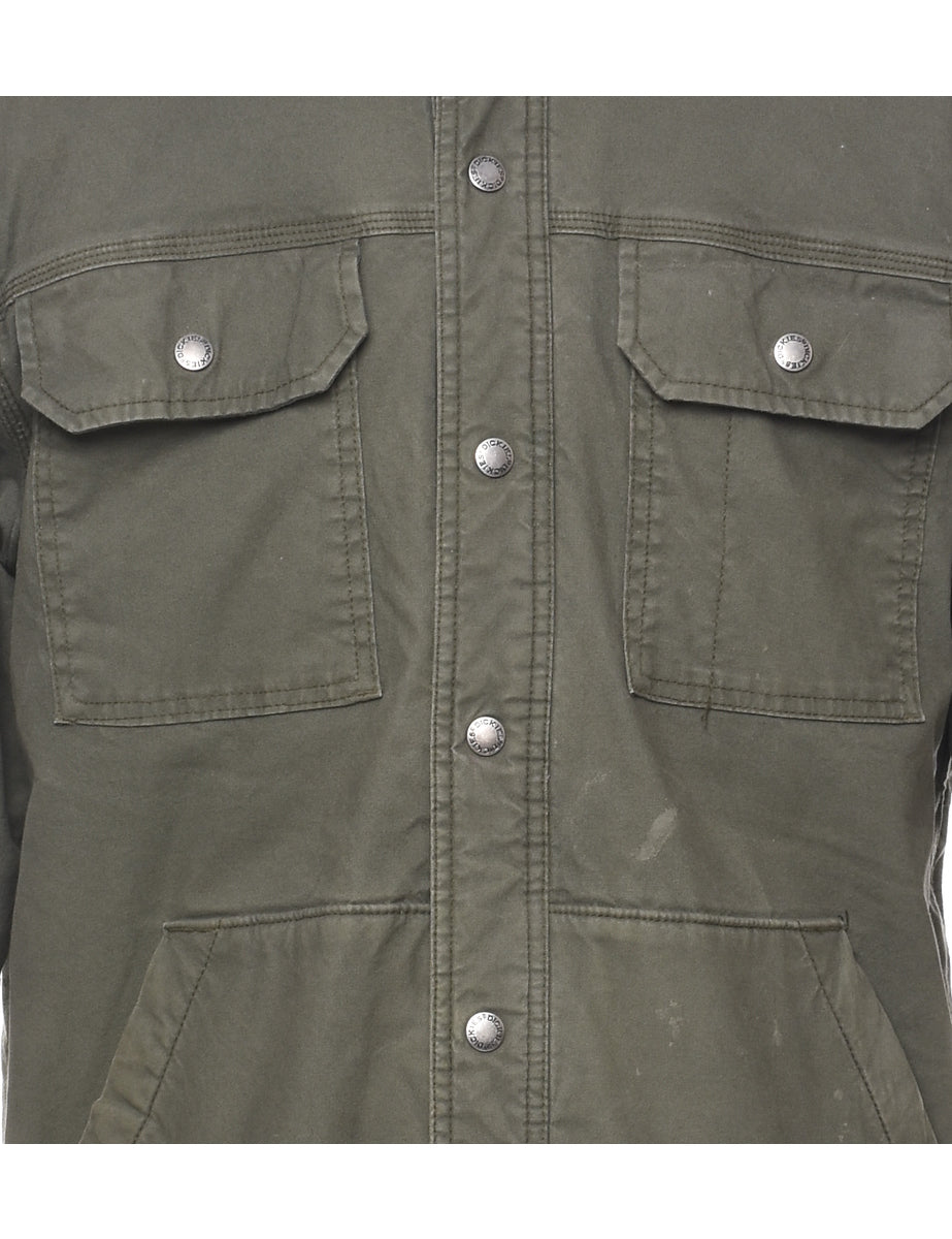 Workwear jacket. Dickies in olive green with multiple pockets.