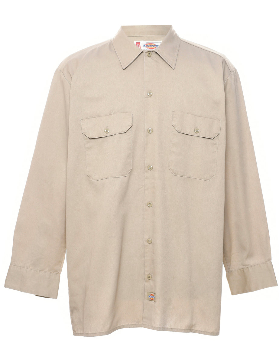 Long sleeved workwear shirt. Comes in beige with a classic collar and pockets.