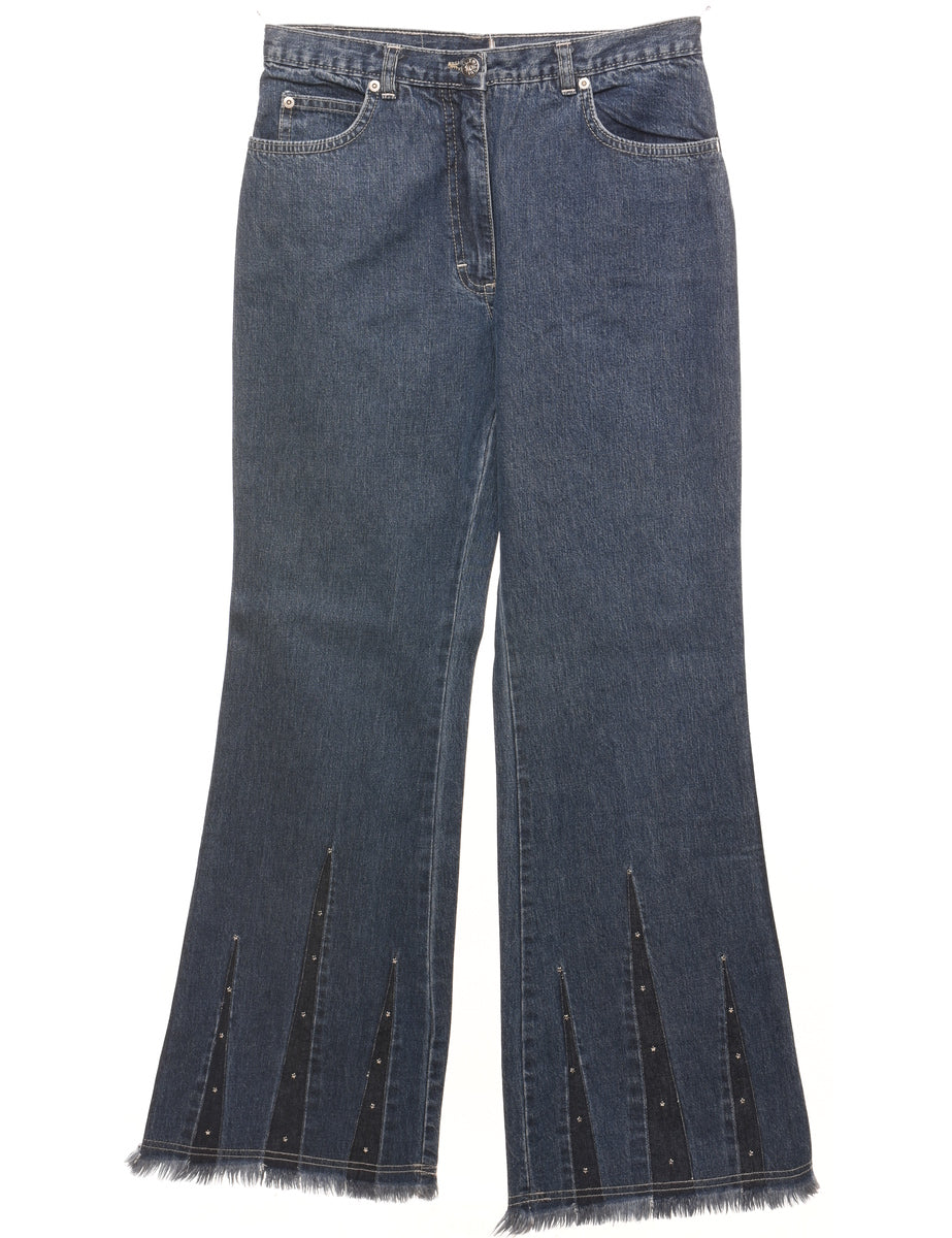 Y2K Vintage Frayed Hem Flared 1990s Embellished Jeans - W29 L32