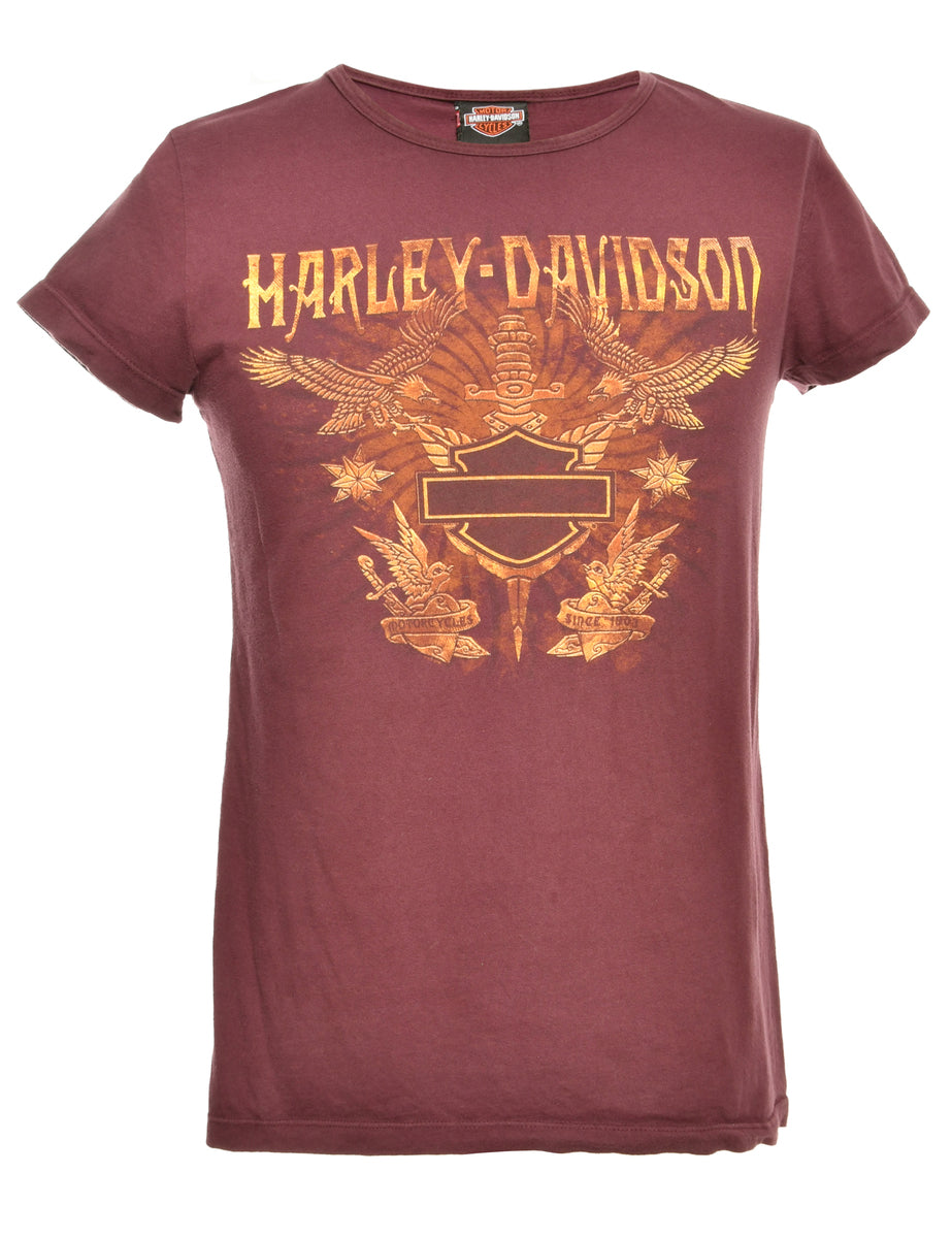 Harley davidson printed t-shirt in maroon from the brand Harley Davidson.