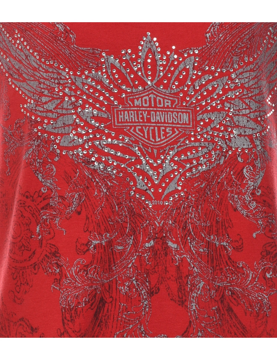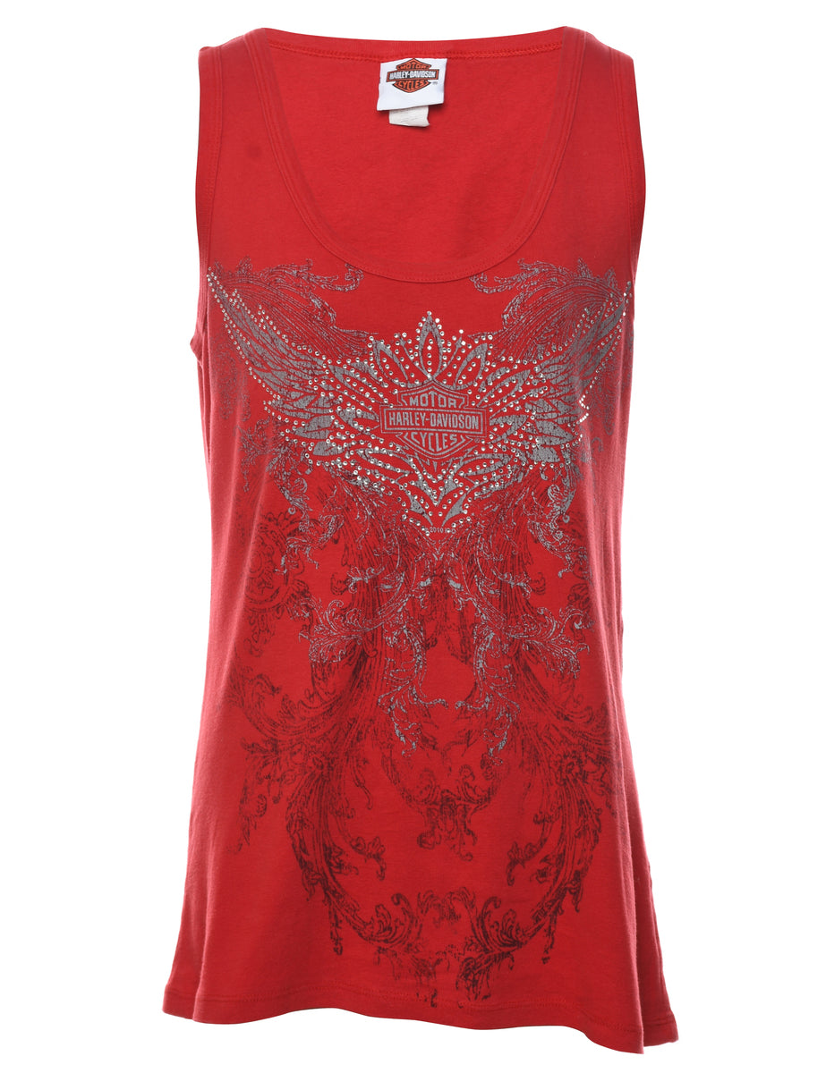 Vintage Harley Davidson Red Y2K Embellished Studded Vest - M