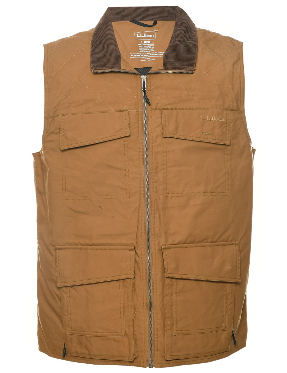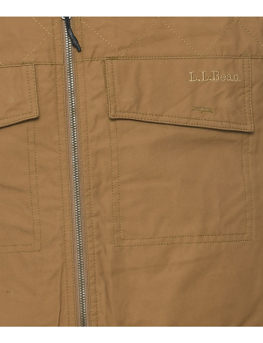 L. L. Bean zip front workwear jacket in brown with contrasting collar and multiple pockets