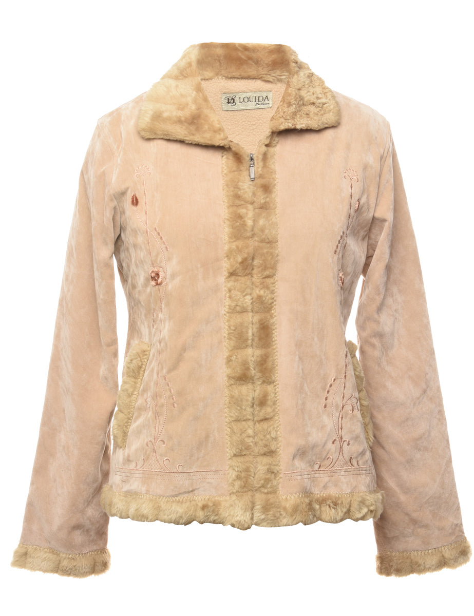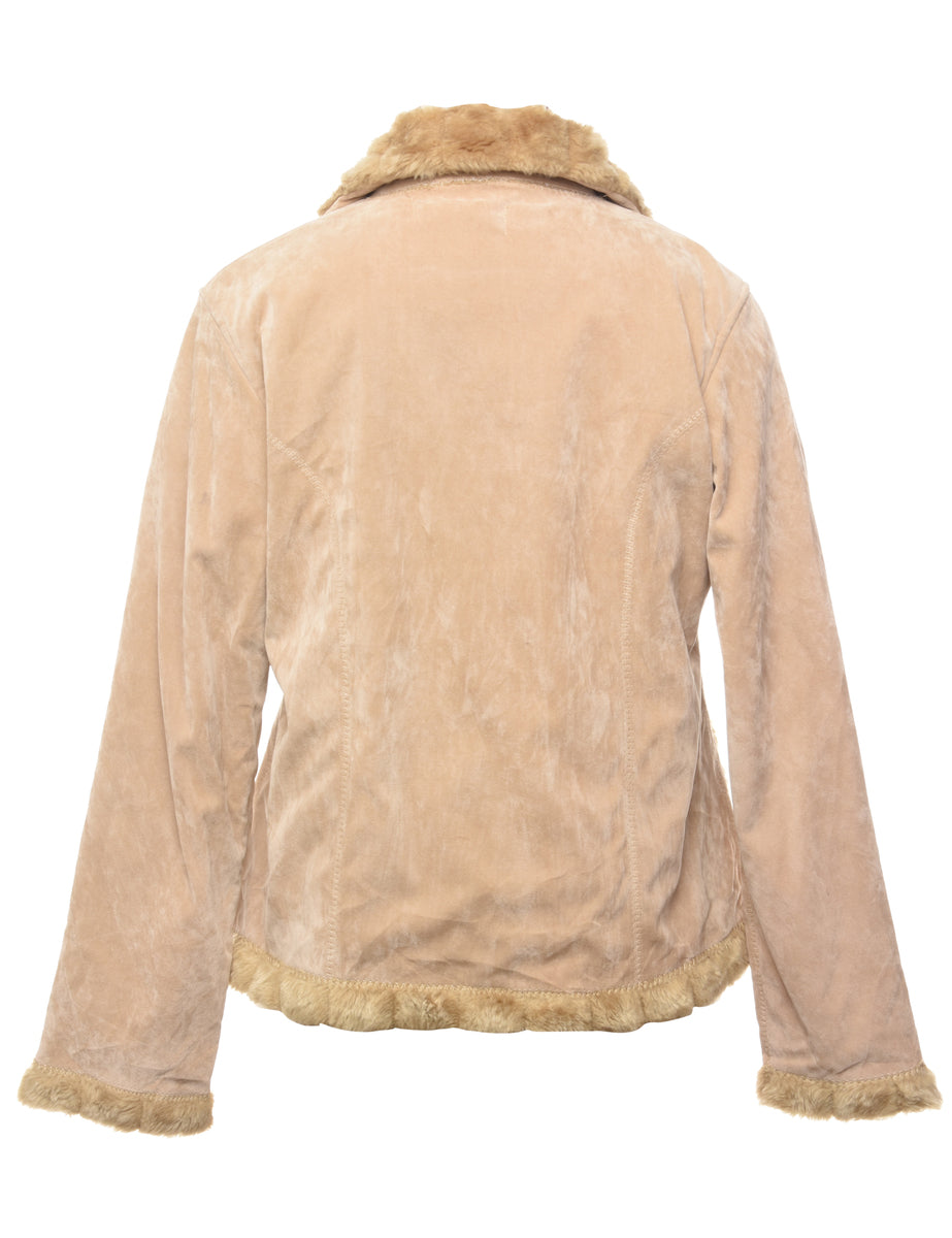 Vintage Light Brown Faux Fur Trim Y2K Jacket - L