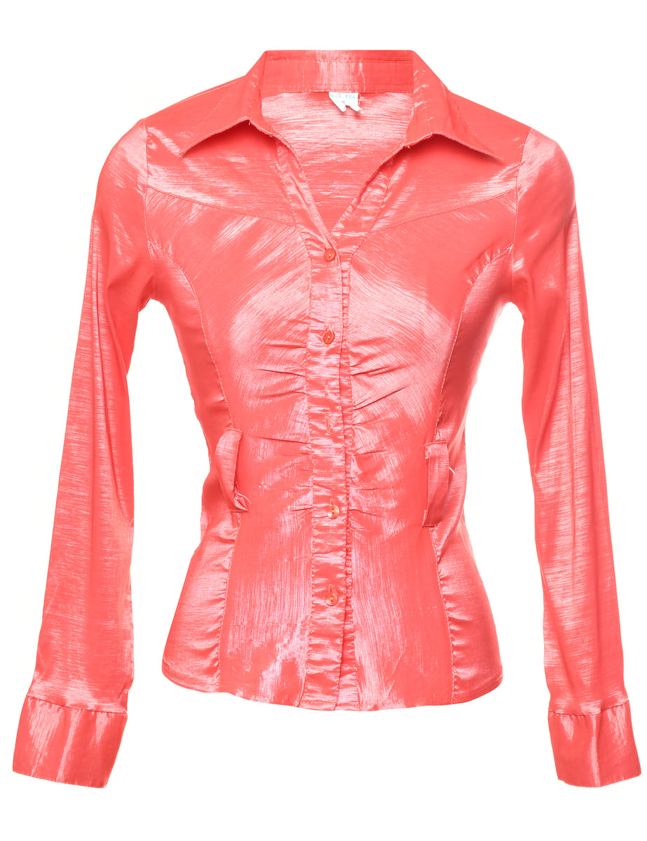 Vintage Long Sleeved Metallic Pink Y2K Shirt - S