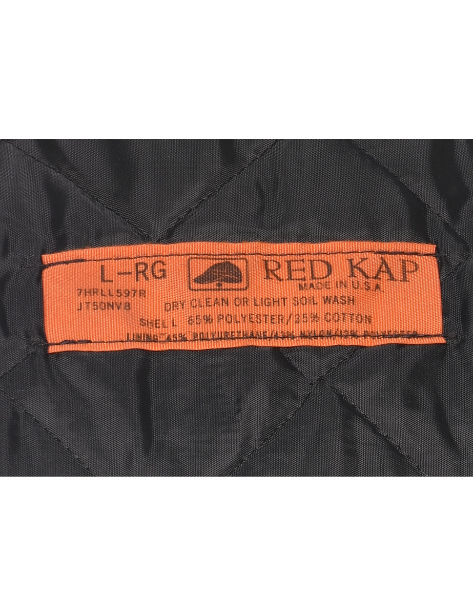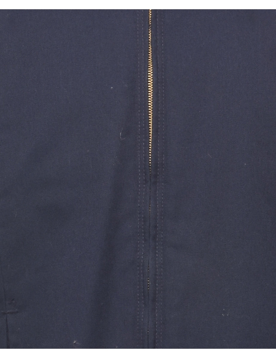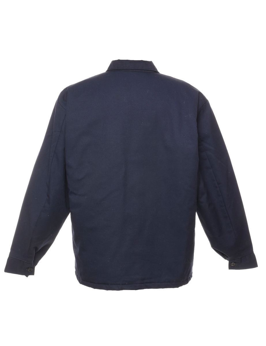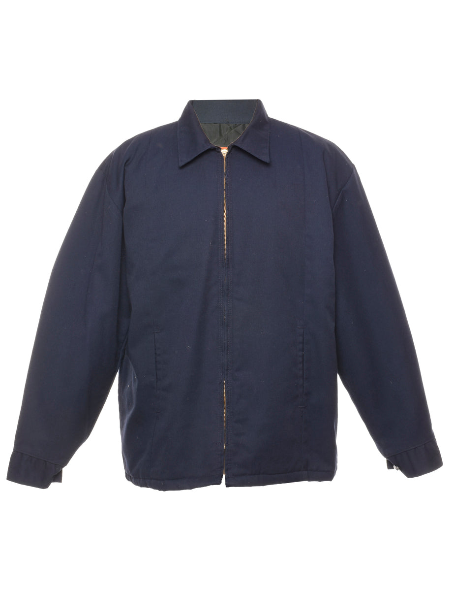 Zip front workwear jacket in navy with quilted lining and multiple pockets.