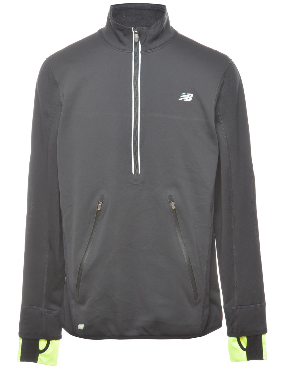 Quarter zip plain sweatshirt. New Balance in black with a high neck and two pockets.