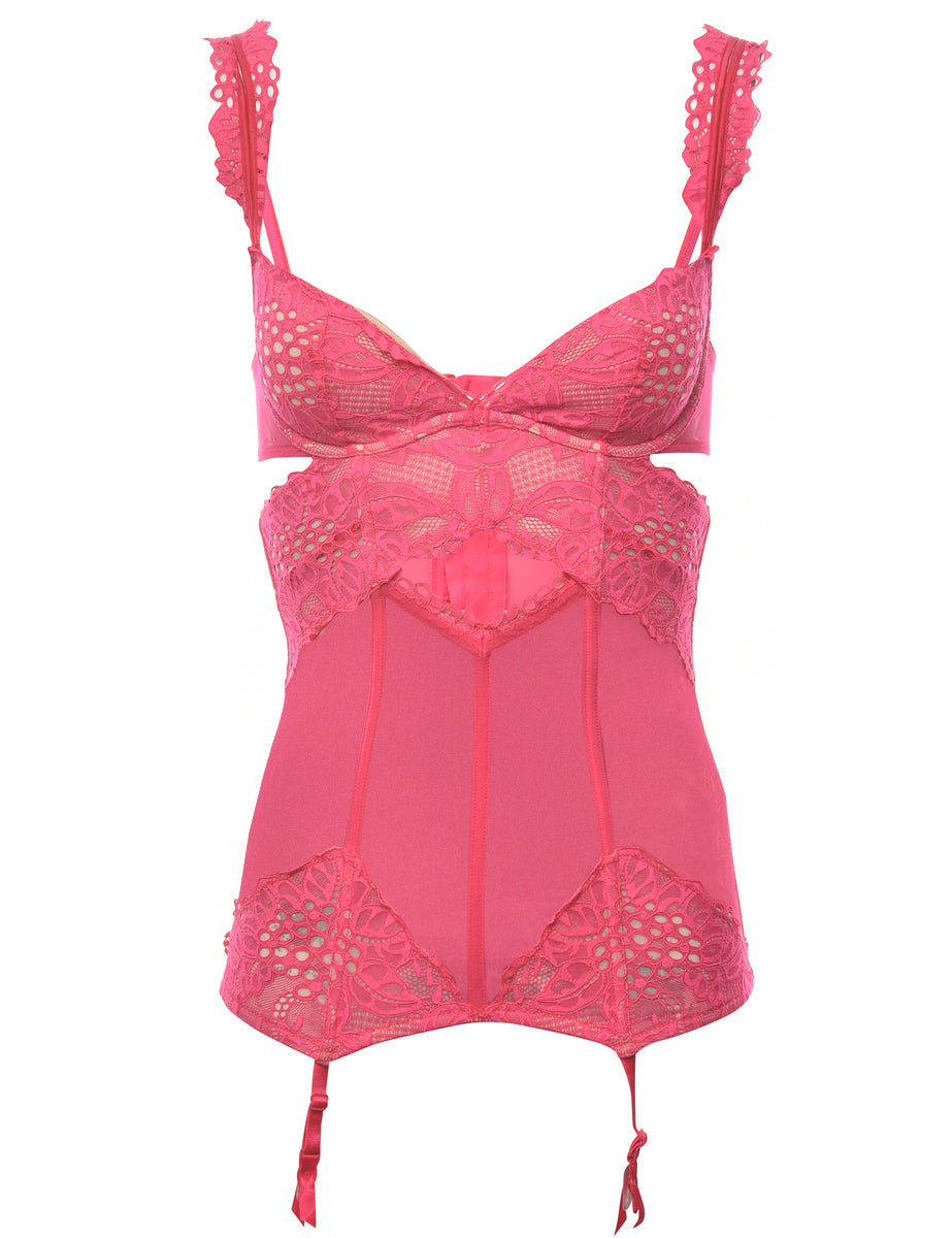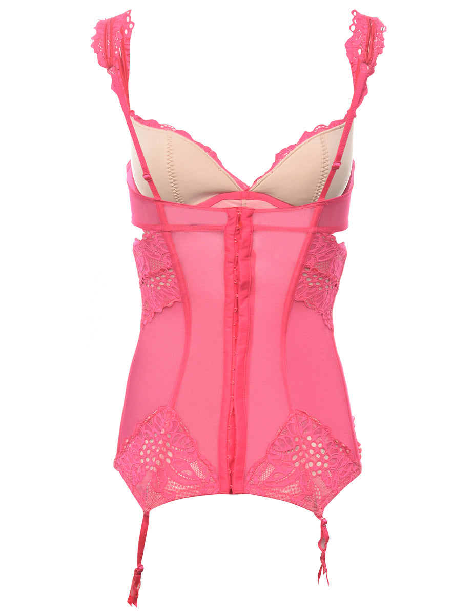 Vintage Sheer Pink Y2K Lace Detail Corset - XS