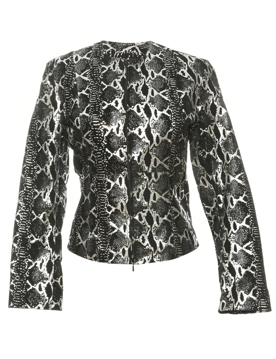 Snakeskin print Y2K jacket in silver & black with full lining.