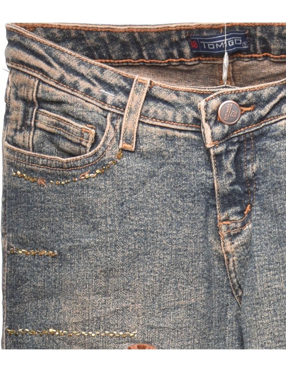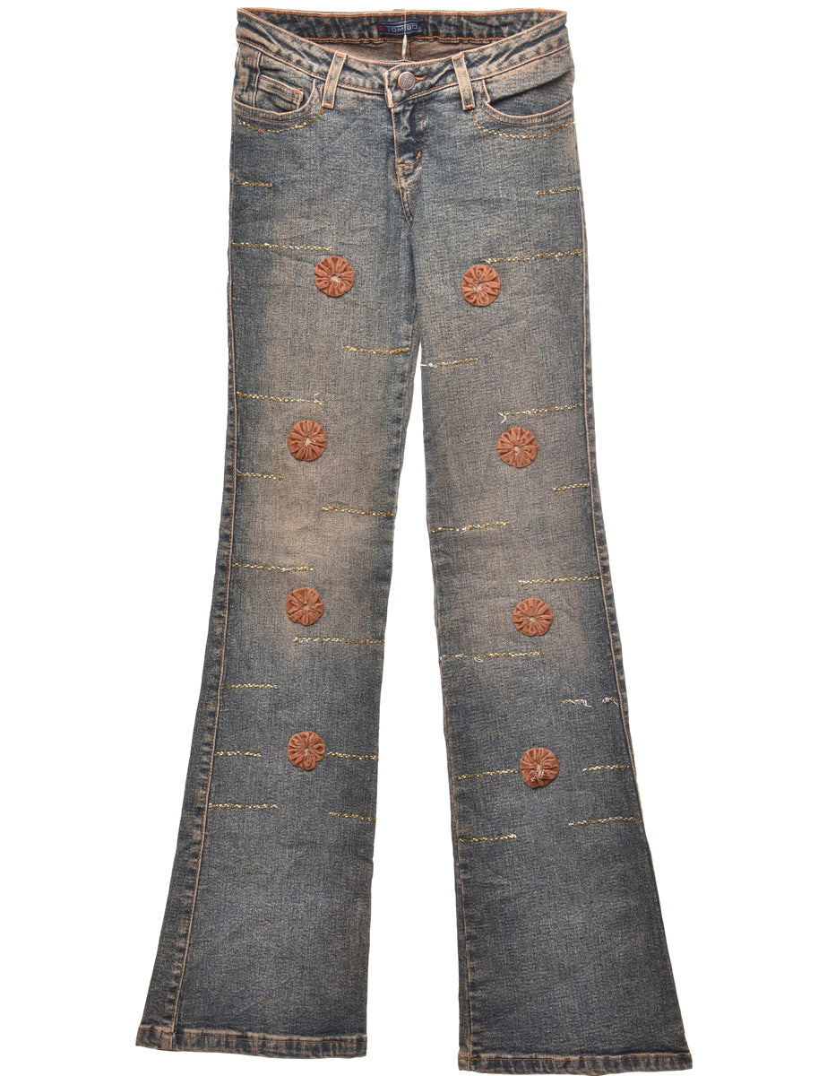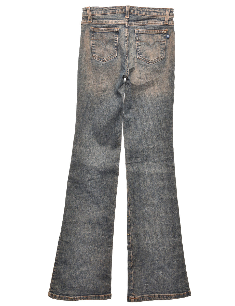Vintage Stone Wash Y2K Embellished Flared Jeans - W22 L33