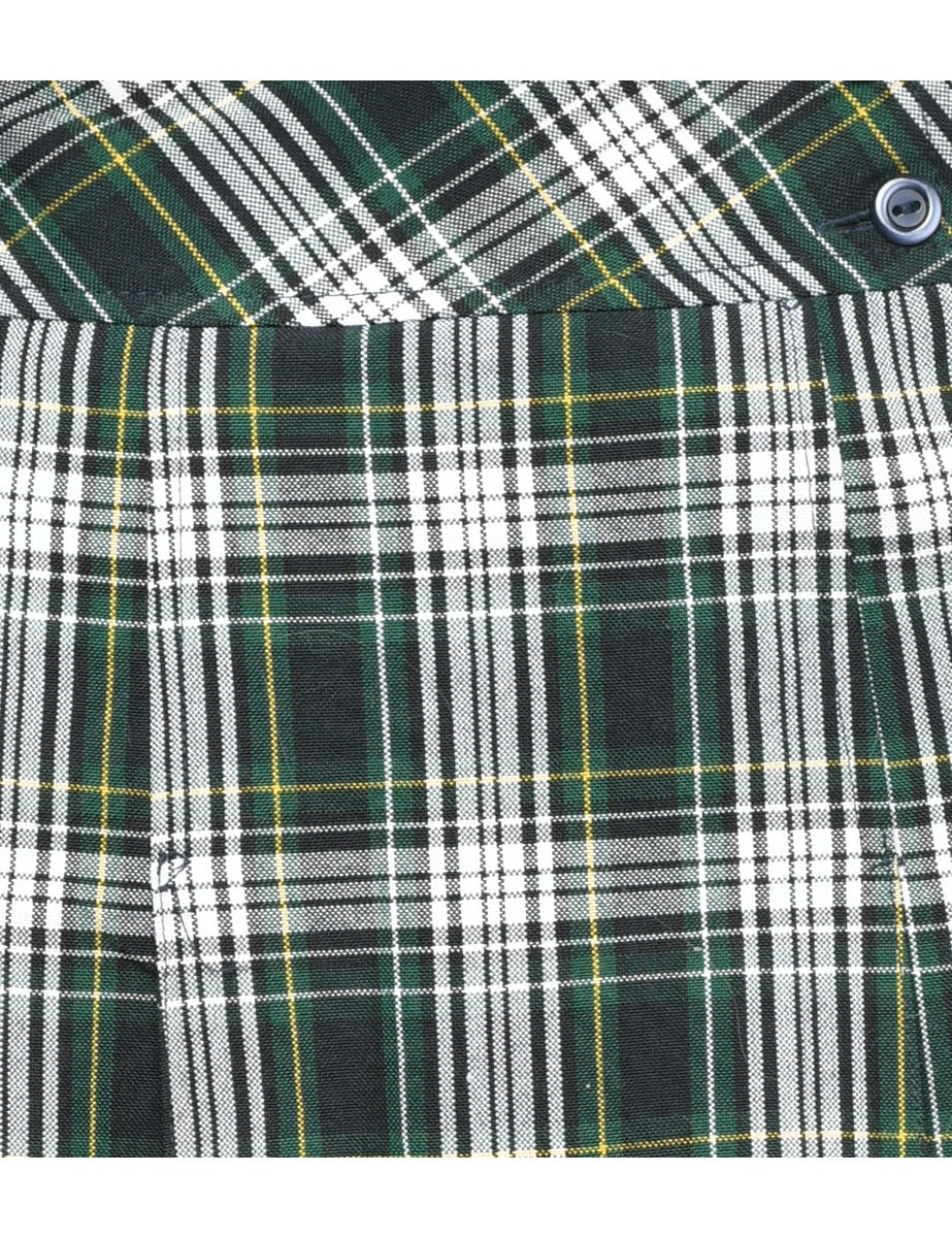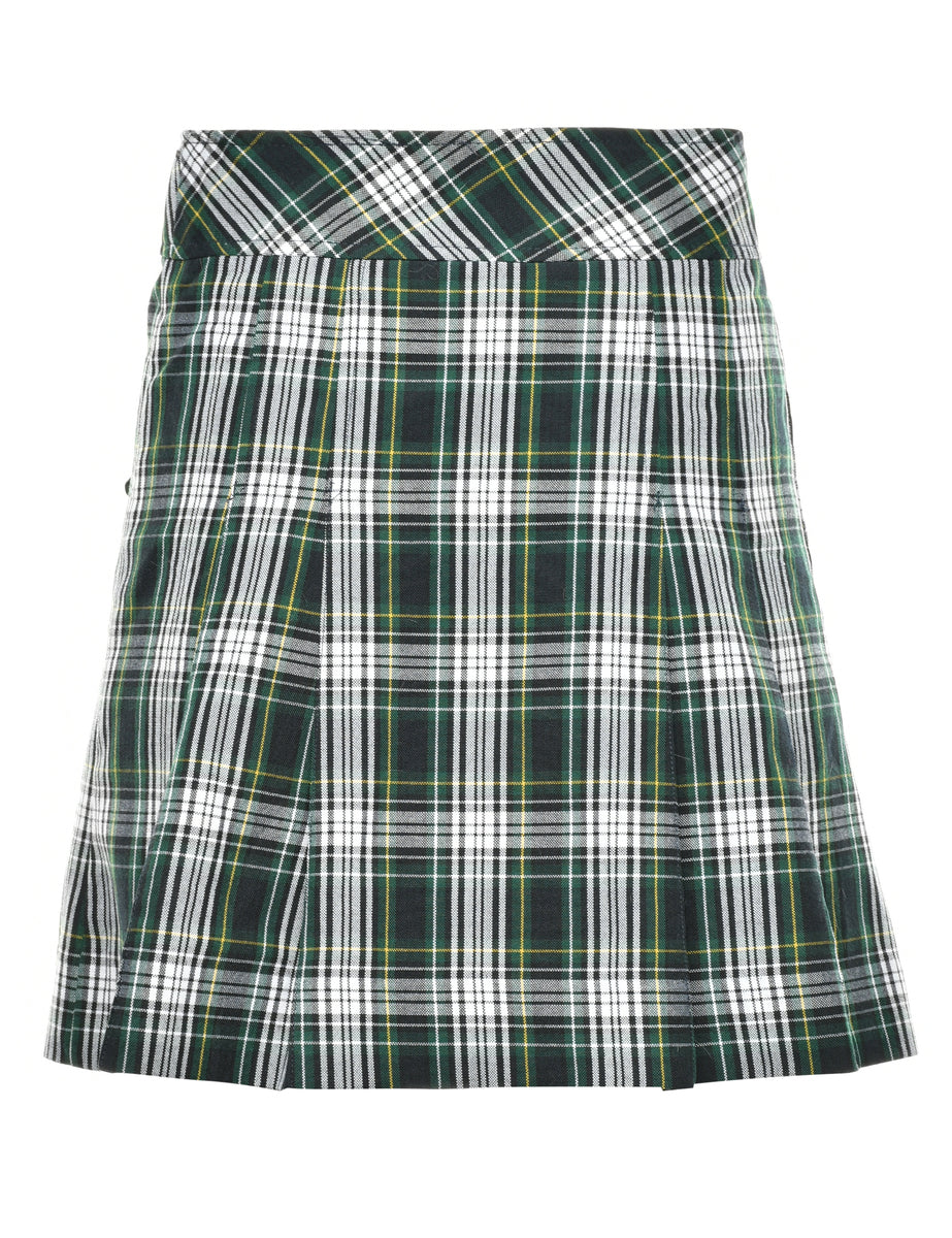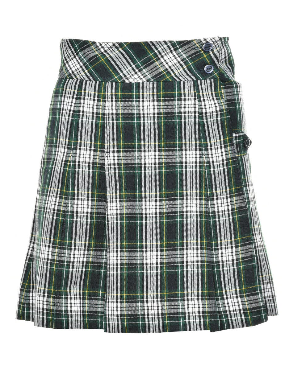 Wrap front pleated skirt in multi-colour with checks.