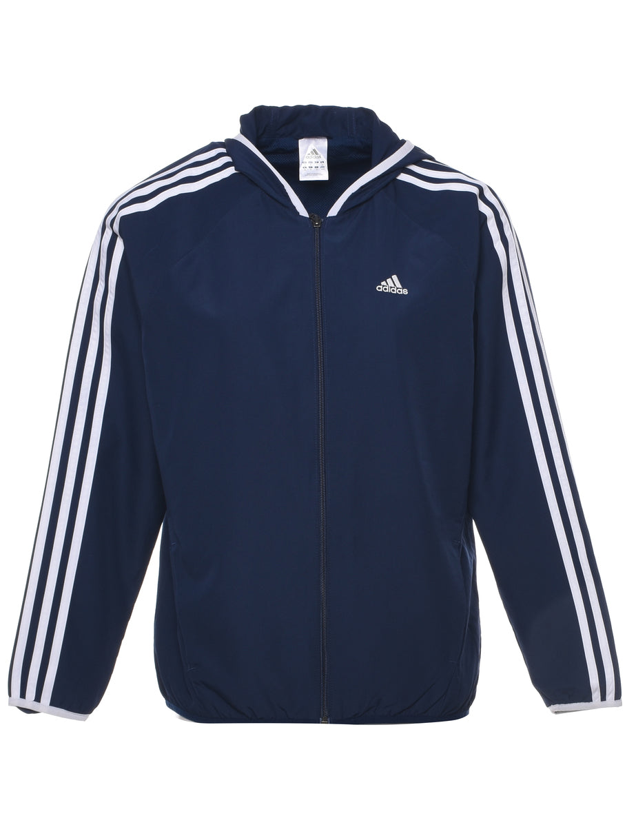 Zip front jacket. Adidas in navy with multiple pockets and raglan sleeves.