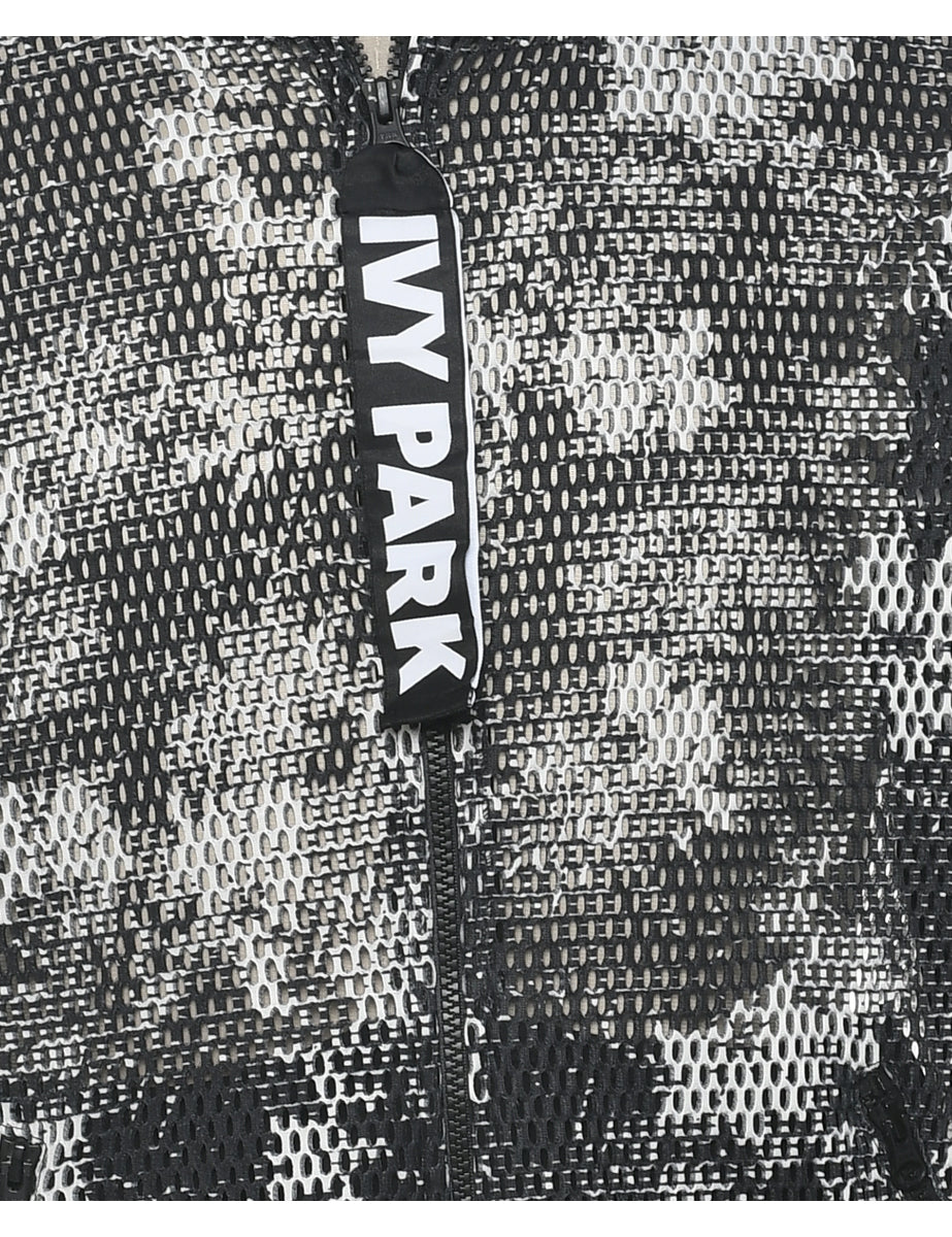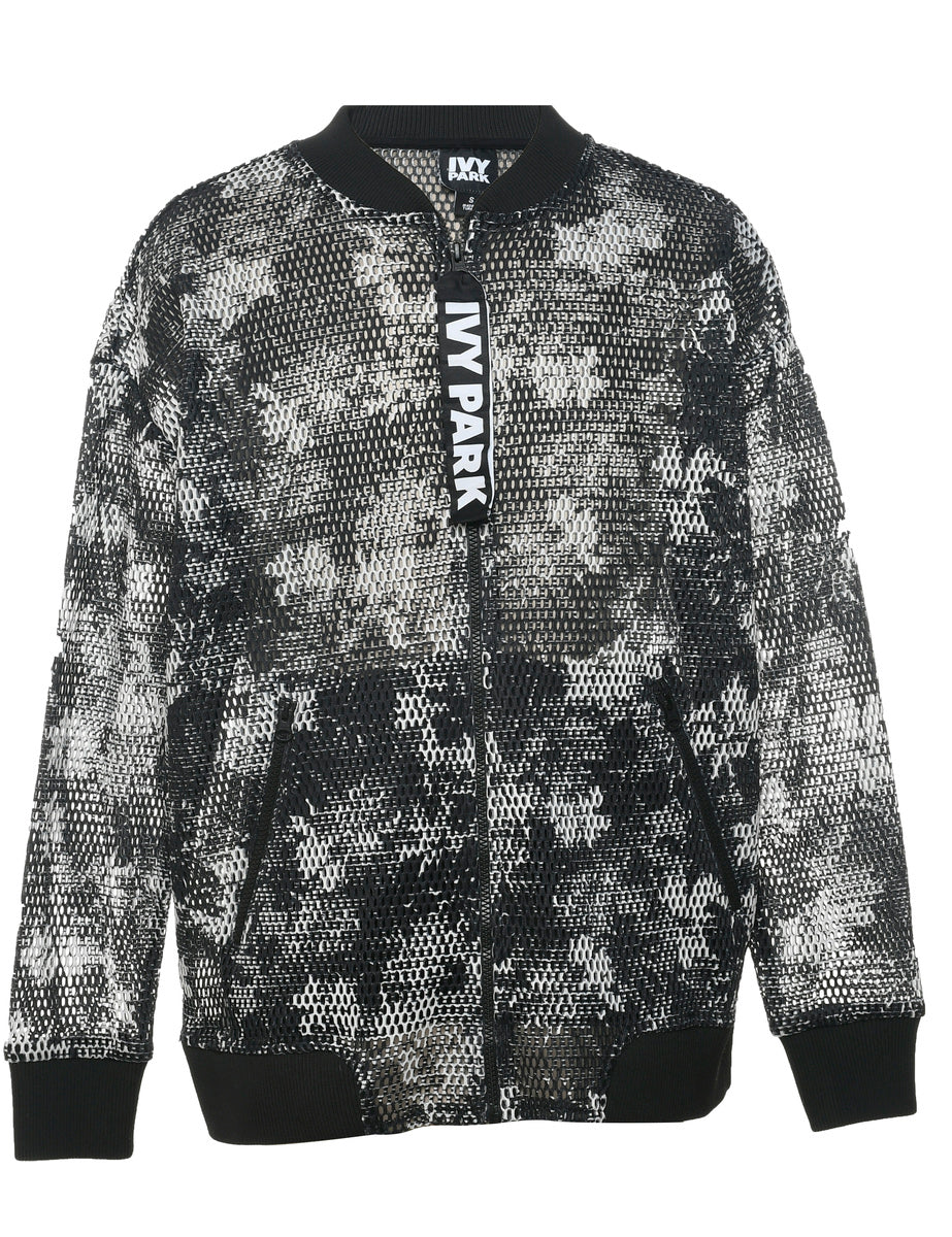 Quarter zip mesh jacket in black & white.