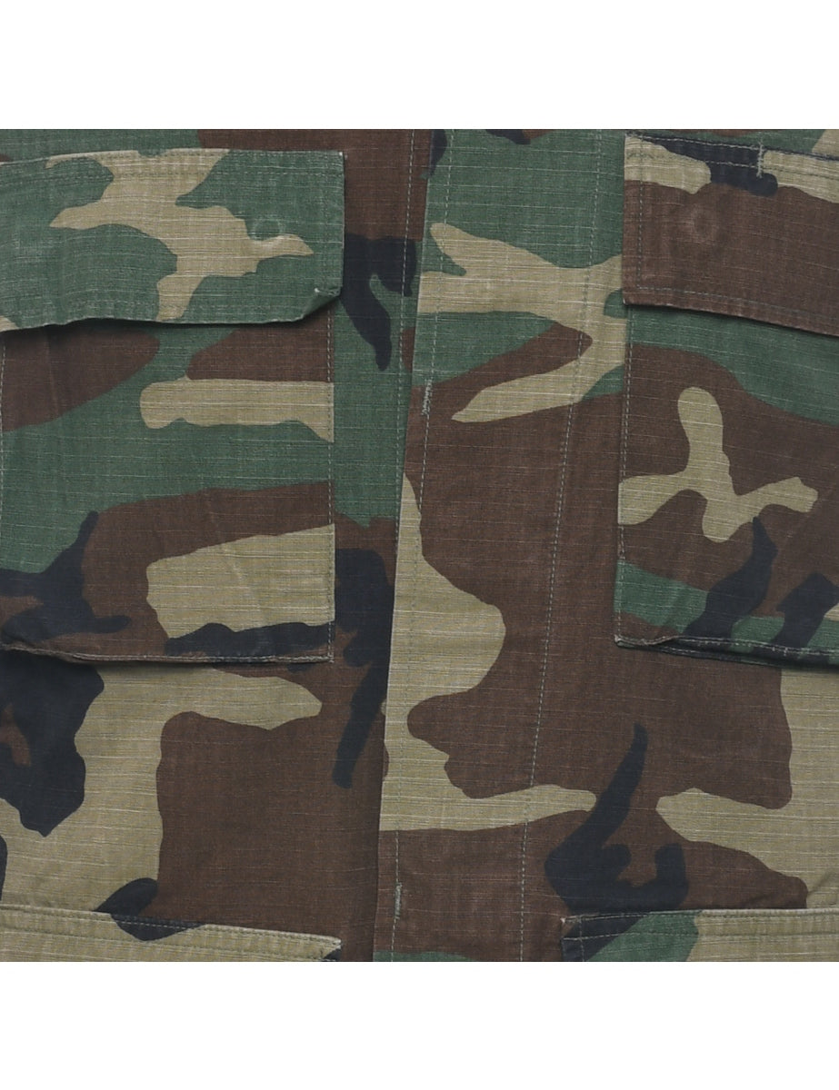 Button front military jacket in multi-colour with camouflage print, multiple pockets.