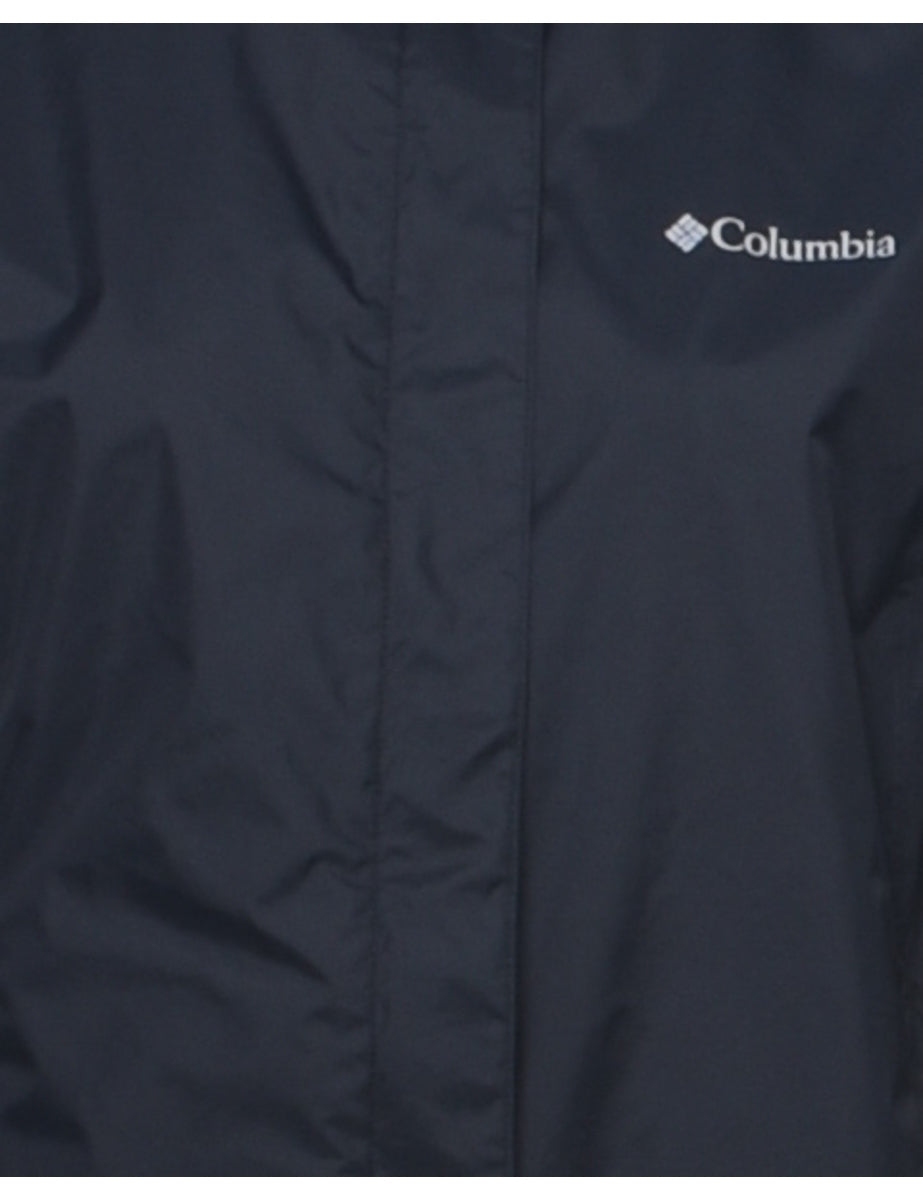 Columbia zip front jacket in black with a hood and multiple pockets.
