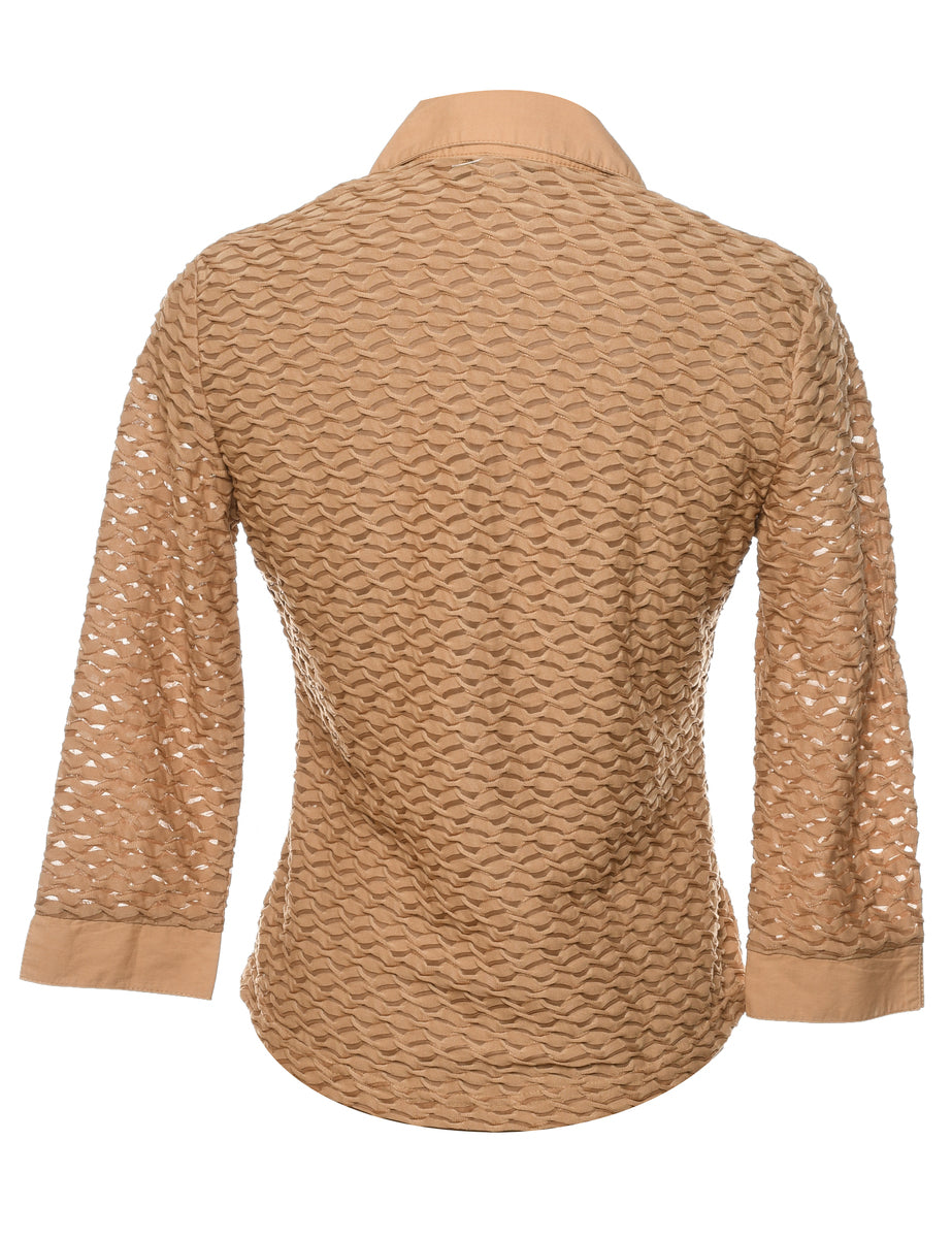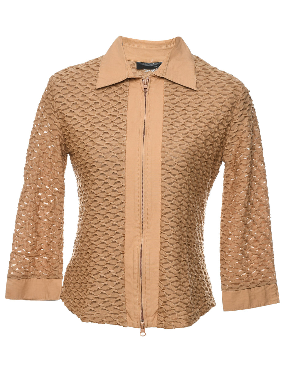 Vintage Light Brown Textured Zip-Front Jacket - M