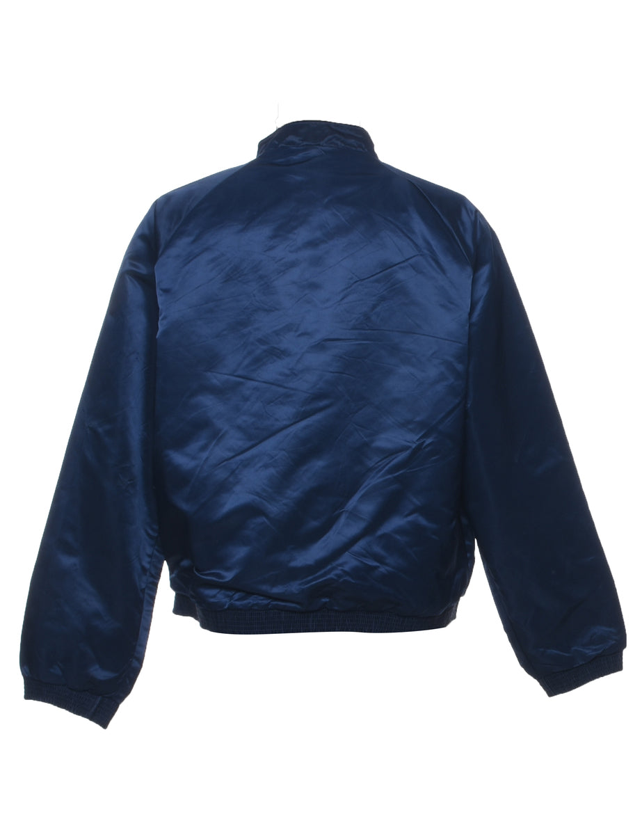 Zip front nylon jacket. Comes in navy with multiple pockets and raglan sleeves.