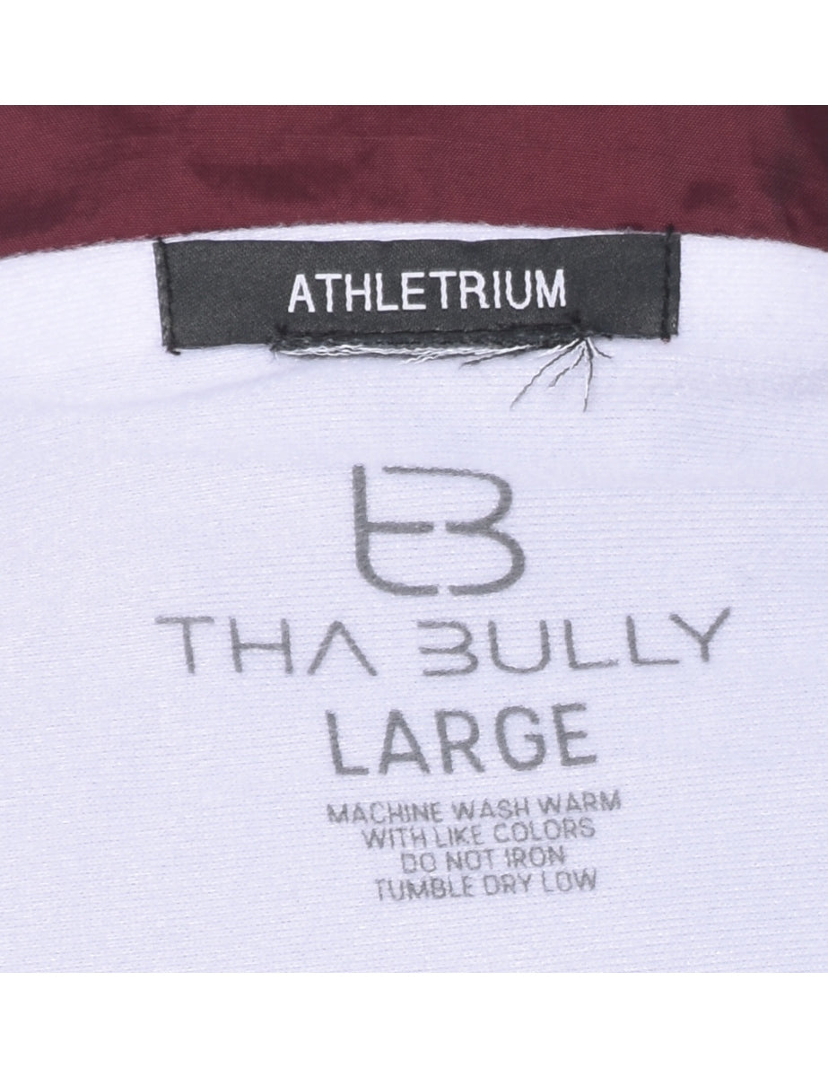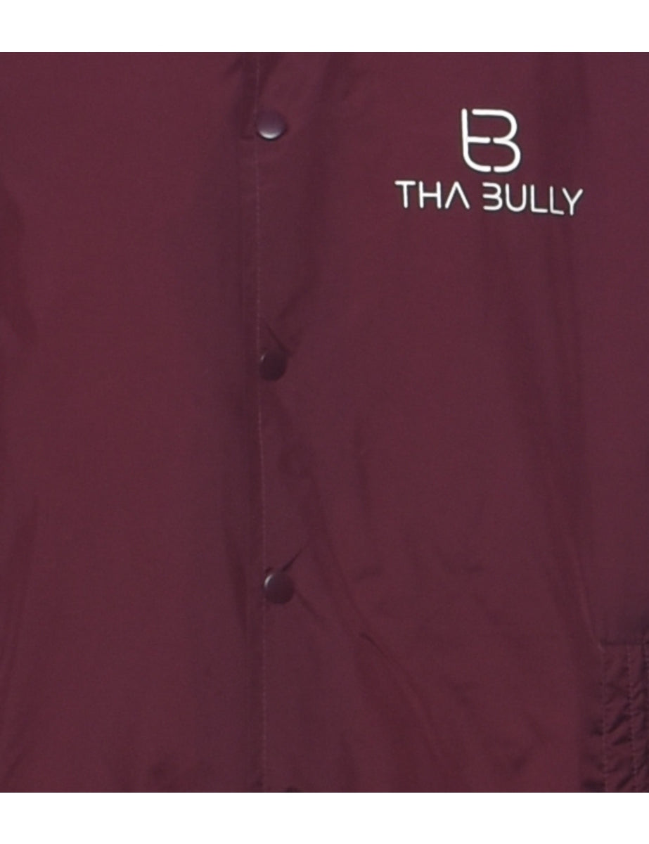 Zip front jacket in plum with multiple pockets and raglan sleeves.