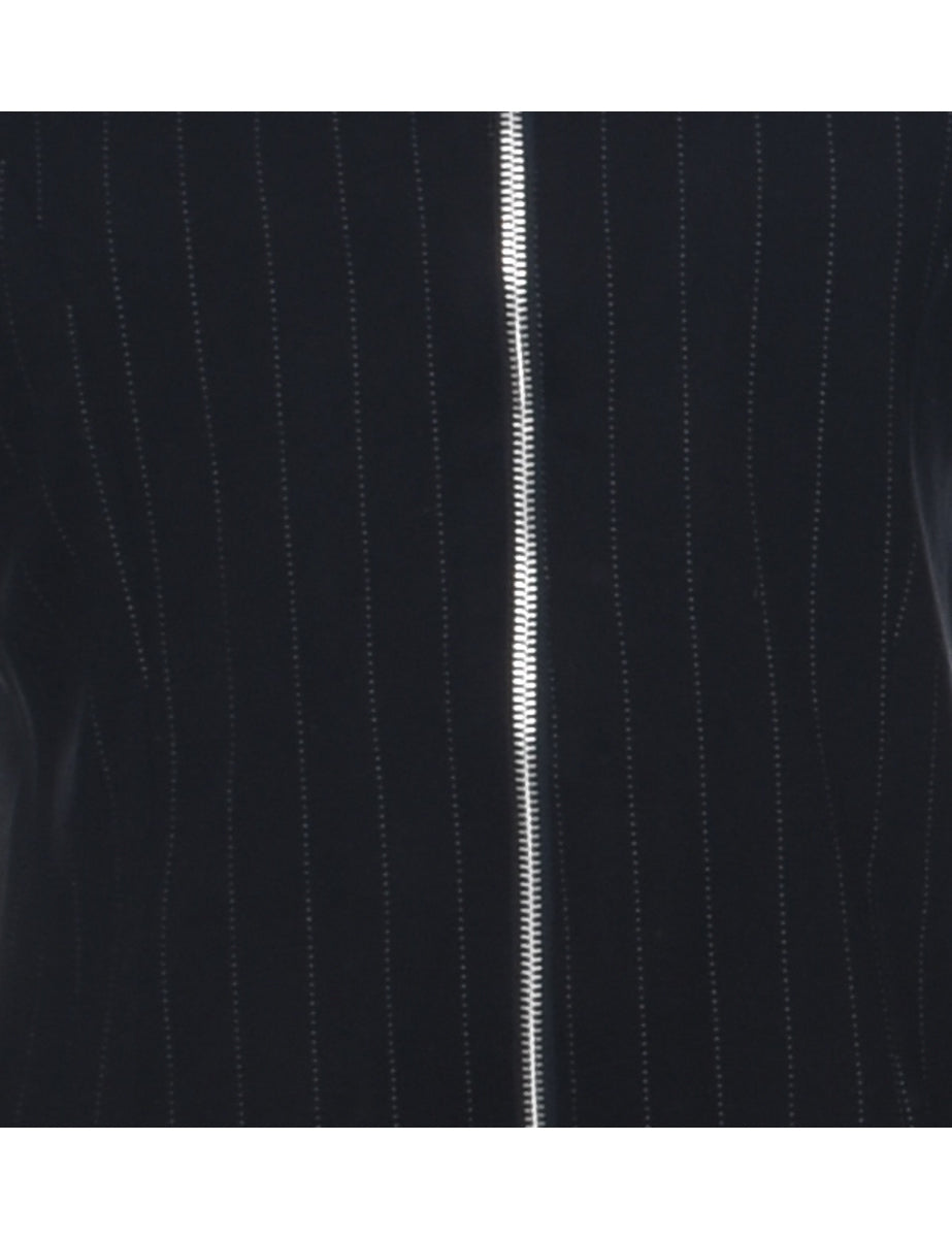 Zip front jacket with striped pattern comes in black with contrasting fabric trim.