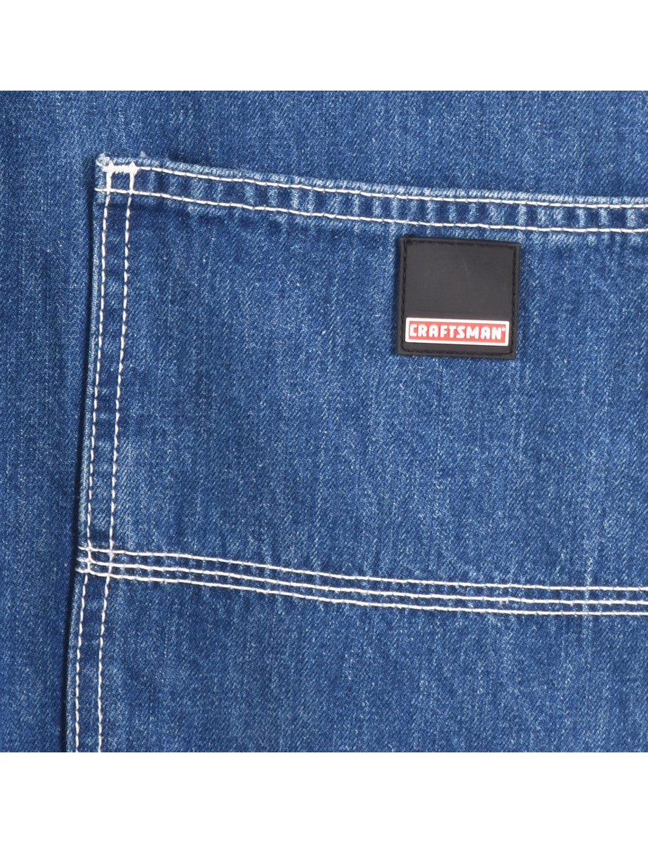 Denim salopettes in dark wash with adjustable straps and multiple pockets.