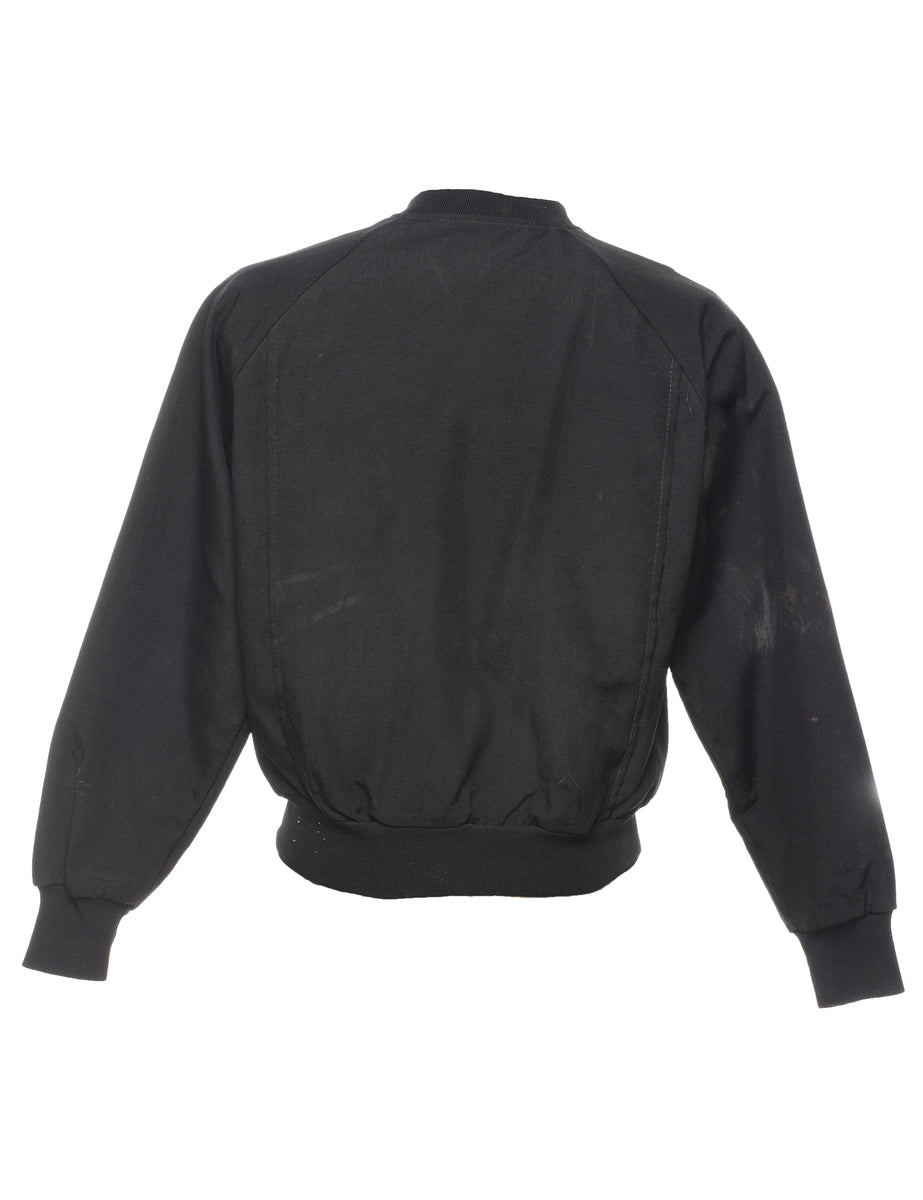 Zip front bomber jacket. Comes in black & red with multiple pockets.